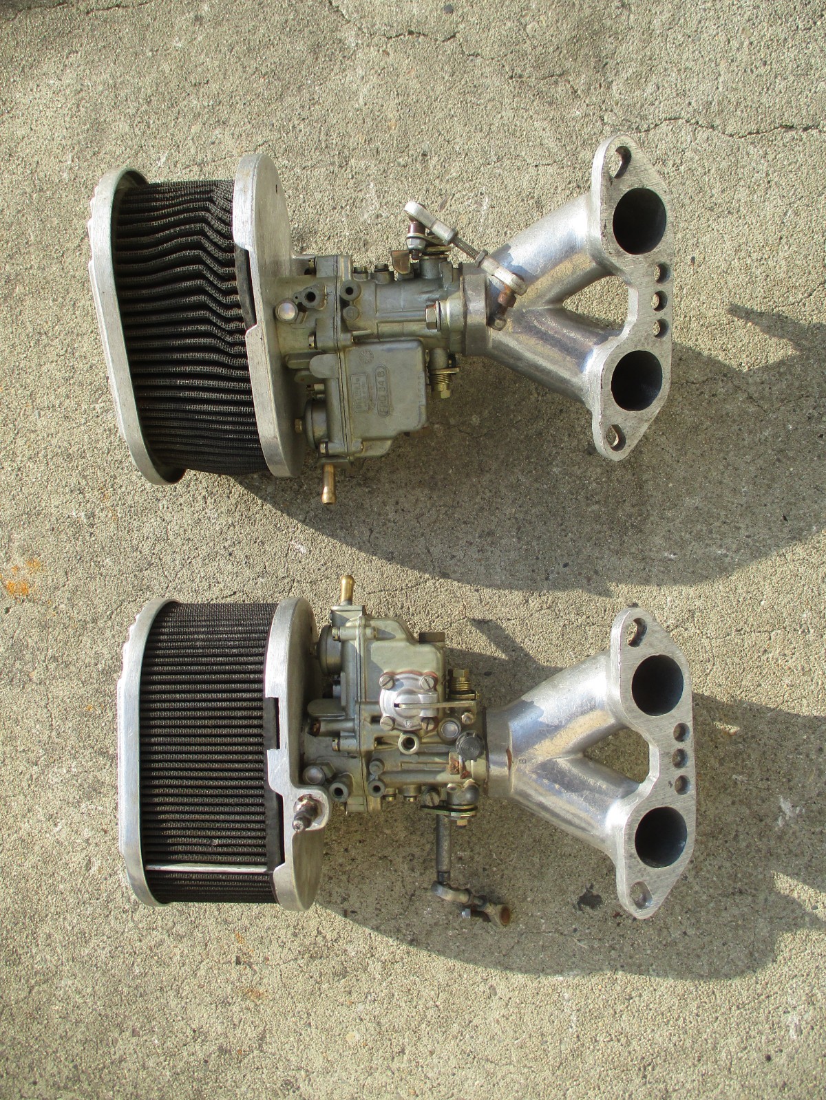 The Dellorto FRD-34B Carburetor and Manifold Set is designed for use with VW / Porsche 914 Type 4 engines. This vintage performance part features a mechanical choke type and a down draft design, making it ideal for classic car enthusiasts looking to upgrade their air and fuel delivery system. Constructed from high-quality aluminum and alloy materials, this carburetor set offers reliable performance with a single barrel count. Perfect for those seeking a nostalgic and powerful solution for their vehicle's fuel system. NICE USED 34MM DELORTO CARB SET FOR 914 PORSCHE QUESTIONS?