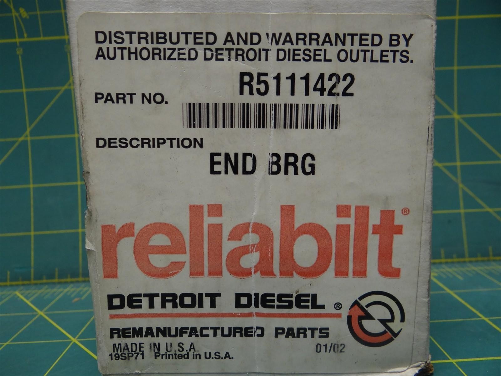 **Detroit Diesel Reliabilt R5111422 Camshaft Bearing End Std. Remanufactured Part** Details: -Part Number: R5111422 -Camshaft Bearing End Standard -Remanufactured Part Remanufactured surplus in good condition (see photos for details). XXQXX16