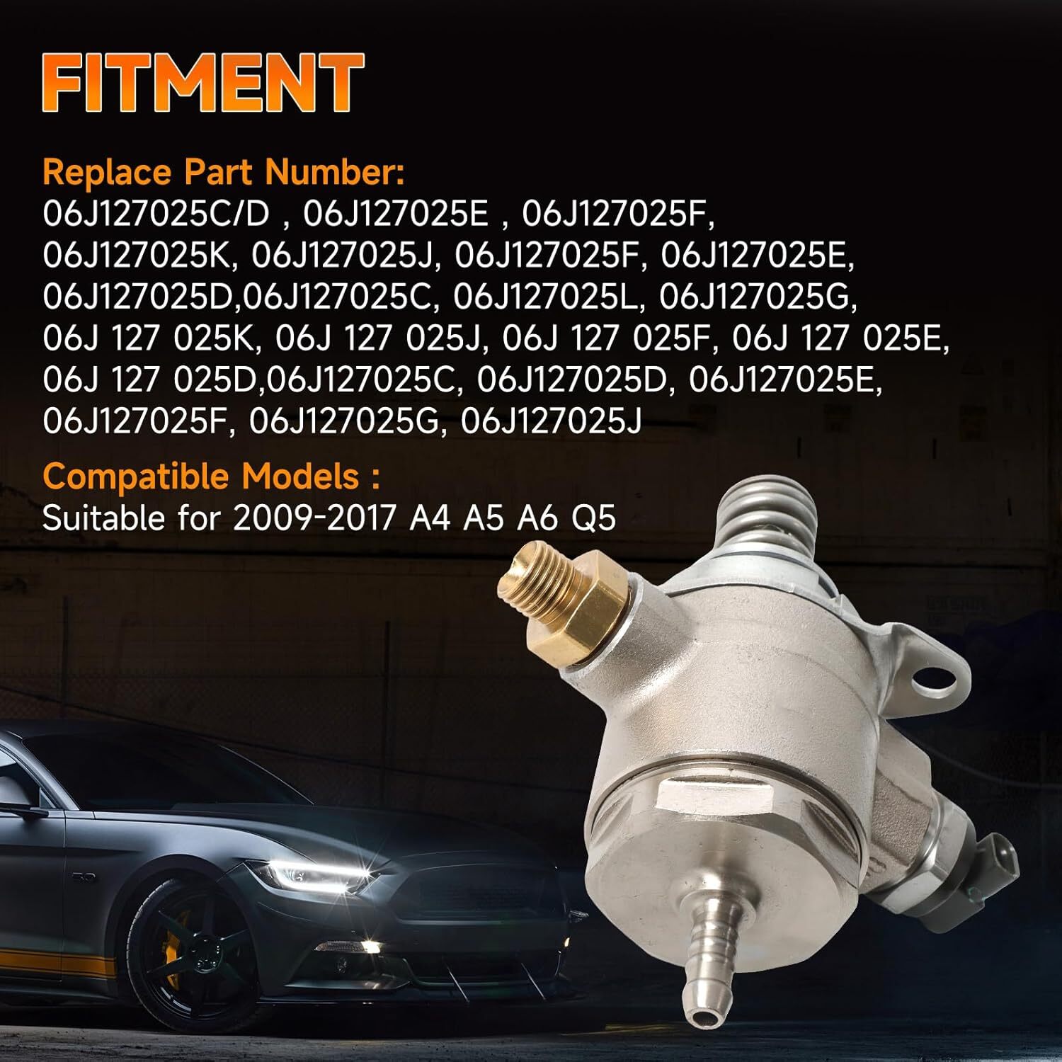 Product Description Direct Injection High Pressure Fuel Pump for Audi A4 2010-2016 A5 A6 Quattro Q5 **Part Number:** 06J127025J, 06J127025E, 06J127025F, 06J127025G, 06J127025K, 06J127025L **Fitment :** For Audi A4 2010-2016 L4 2.0L For Audi A4 Quattro 2010-2016 L4 2.0L For Audi A5 2010-2014 L4 2.0L For Audi A5 Quattro 2010-2017 L4 2.0L For Audi A6 2012-2015 L4 2.0L For Audi A6 Quattro 2013-2015 L4 2.0L For Audi allroad 2013-2016 L4 2.0L For Audi Q5 2011-2017 L4 2.0L For Audi TT Quattro 2011-2015 L4 2.0L **Packag****e Included:** 1XHigh Pressure Fuel Pump **Notes:** 1\. Please check compatibility chart, part photos, OE part number and part description above carefully to make sure it is what you need. 2\. Any questions please contact us by clicking "ask a question" at the bottom of this page or click "contact seller" in the "purchase history". - About Us - Payment - Shipping - Returns - Your Feedback 1.Please be very careful to check our **photos** and **OEM NO****.**Before you purchase, make sure the photo showed is same as you wanted.thanks 2.Please offer us your correct address includes receiver,city,state,zip code,country in **English language**,and also mark down the **phone number** which could contact with you.thanks 3\. If you want to buy more items or you are a wholesaler , just tell us and we will give you a comfortable price, Thanks!!!) 1\. We only accept **PayPal**. 2\. Pay Pal is the only online payment method we accept. 2.Please provide physical shipping address & telephone number for delivery, and we don’t ship to P. O. Box. 3.The domestic shipping is usually 2-5 business days and international shipping is 5-10 business days depending on your location. 1.Customers may return an item for refund or exchange within 30 days after the item is received. Items must be returned in their original shipping and item packaging and **should not be used**. 2.We only accept our own parts **without any broken**. 3.**Customers** are **responsible to**the shipping back cost if you buy our item by mistake or change your mind. 4.Refund will only send once we receive the part from you without any problem.thanks 1\. We greatly appreciate your **Five Stars POSITIVE feedback**. 2\. Please Do NOT leave negative or neutral feedback **Without Any Contact**. 3\. It 's very important to us, Thanks a lot! 4\. Any questions please feel free to contact us. 5\. We believe any problem can be settled with our good communication. About Us 1.Please be very careful to check our **photos** and **OEM NO****.**Before you purchase, make sure the photo showed is same as you wanted.thanks 2.Please offer us your correct address includes receiver,city,state,zip code,country in **English language**,and also mark down the **phone number** which could contact with you.thanks 3\. If you want to buy more items or you are a wholesaler , just tell us and we will give you a comfortable price, Thanks!!!) Payment 1\. We only accept **PayPal**. 2\. Pay Pal is the only online payment method we accept. 2.Please provide physical shipping address & telephone number for delivery, and we don’t ship to P. O. Box. 3.The domestic shipping is usually 2-5 business days and international shipping is 5-10 business days depending on your location. Returns 1.Customers may return an item for refund or exchange within 30 days after the item is received. Items must be returned in their original shipping and item packaging and **should not be used**. 2.We only accept our own parts **without any broken**. 3.**Customers** are **responsible to**the shipping back cost if you buy our item by mistake or change your mind. 4.Refund will only send once we receive the part from you without any problem.thanks Your Feedback 1\. We greatly appreciate your **Five Stars POSITIVE feedback**. 2\. Please Do NOT leave negative or neutral feedback **Without Any Contact**. 3\. It 's very important to us, Thanks a lot! 4\. Any questions please feel free to contact us. 5\. We believe any problem can be settled with our good communication. powered by