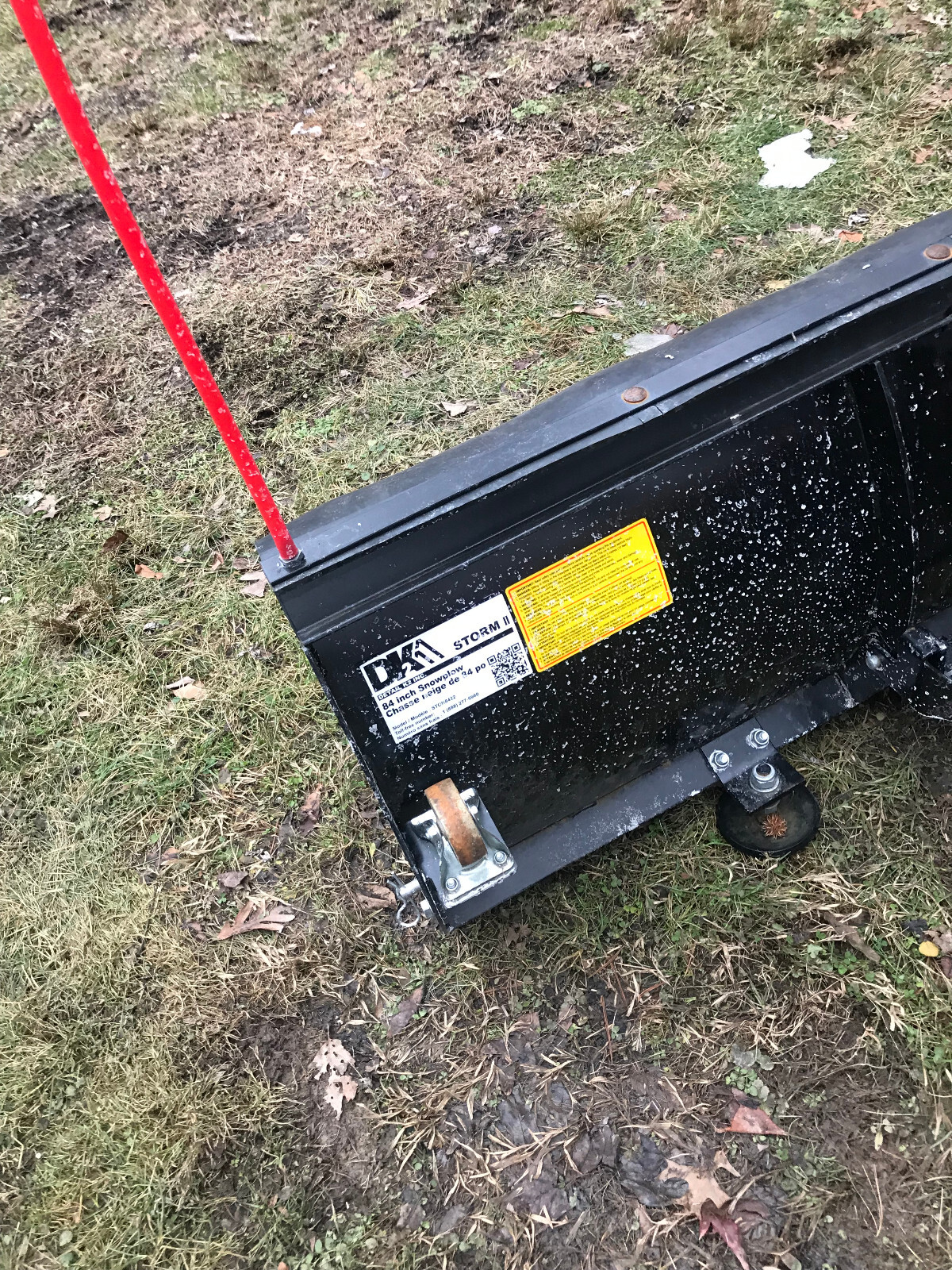 The DK2 Storm plow will move a lot of snow! Two foldable steel wheels and a skid stand mean the plow will quickly and easily slide into your existing mount or a new mount available for most trucks and SUVs -- there is no truck mount or truck included in this sale. There are two controls for the electric winch which lifts and lowers the blade. One control is wireless and the other is wired. Regardless, the winch can be controlled from inside your warm vehicle. The blade angles set and lock manually with a single lever lifting a pin to one of three blade positions -- left, right and straight. The unit is powder-coated, all-steel construction with UV powder coating for added durability. New, these things are selling for about $2,000. The plow is about 6 years old and was used pretty regularly. It was always stored in a garage, so it has minimal exposure to the elements. I sold the vehicle shown in the pictures and don't have another one that I want to mount it to. Because of the weight (300+ pounds) and size, this is only available for local pick up. Upon payment, I will hold it for pick up or if you wish to try to arrange private freight shipping.