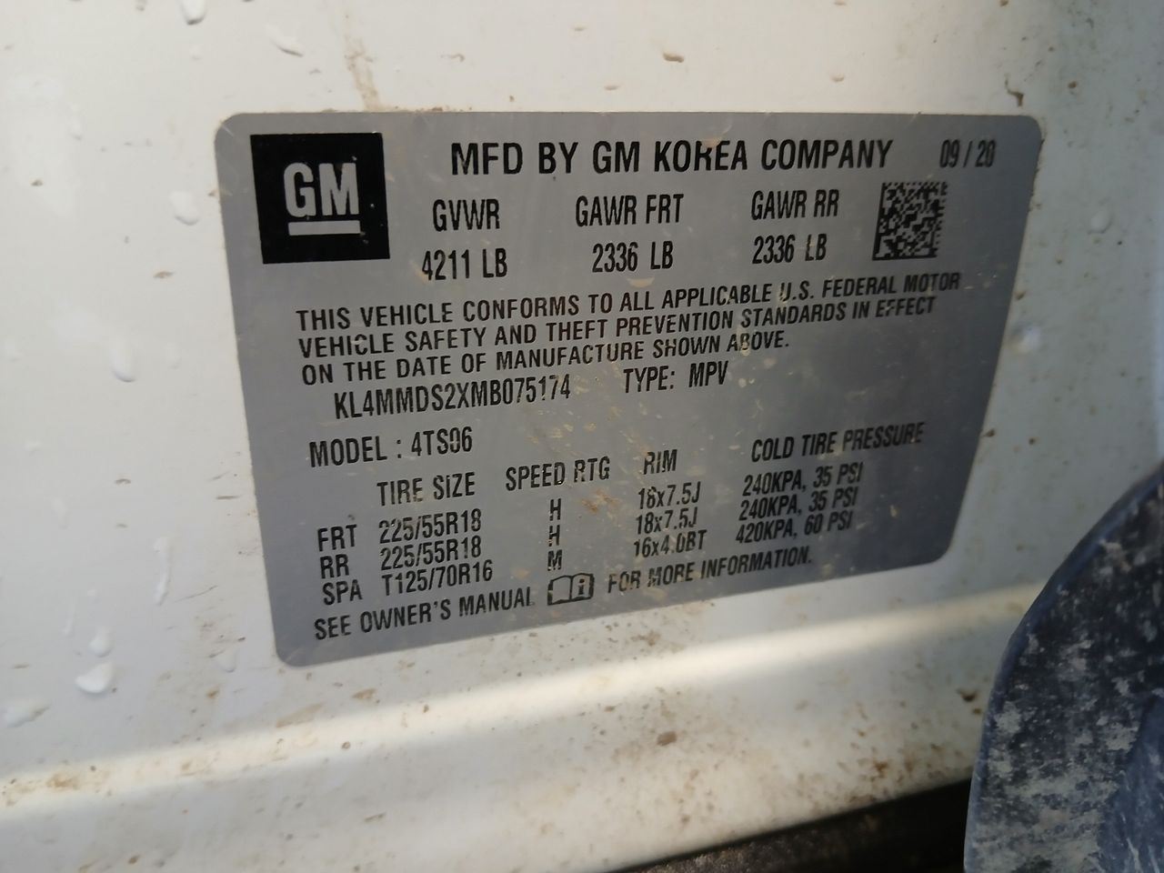 - VIN #: KL4MMDS2XMB075174