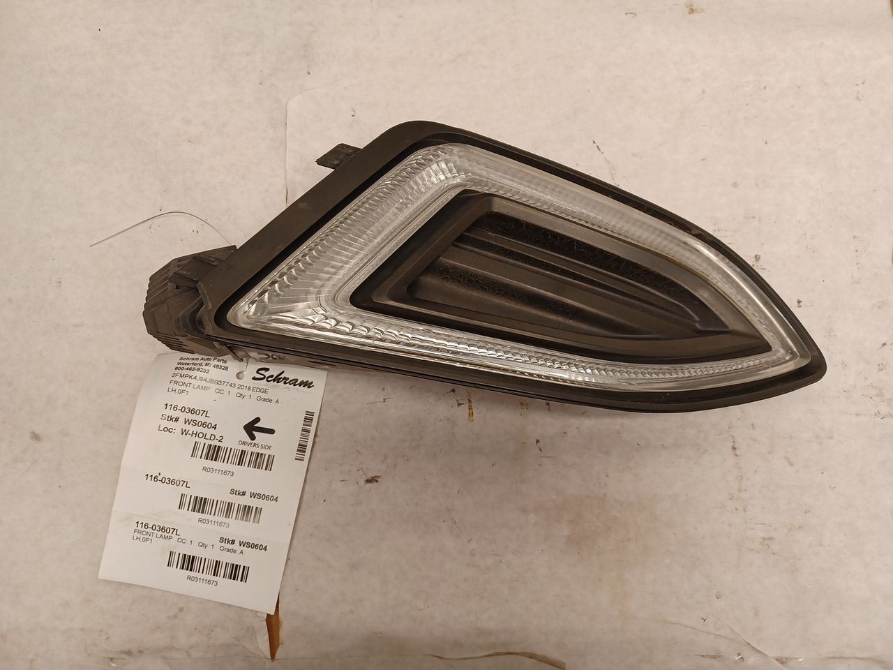 1923   Description LH,0F1 Mileage: 99000 This item will fit the following vehicles/applications: EDGE 15-18 daytime running lamps, (bumper mounted), L. **Illuminate the Way with Reliable Fog Light and/or Running Light!** **Schram Auto and Truck Parts - Fog Lights and Running Lights** At Schram Auto and Truck Parts, Inc., we recognize the significance of clear visibility in various driving conditions. Our **Fog Light / Running Light** not only enhances your safety, but it also adds a touch of style to your vehicle. We take pride in offering tested and inspected fog lamps, all in perfect working condition. As a trusted automotive recycling company since 1923, we provide quality original equipment fog lights that continue to serve an essential role in helping others repair, restore, and enhance their vehicles. Rest assured that all of our fog lamps have undergone testing and inspection to ensure their flawless performance. Please note that the fog lamps are sold without grilles or bezels, unless stated otherwise. Wear and scratches from normal use are expected on this item. To ensure the perfect fit, refer to the 'Fitment' section of this listing for precise compatibility. We strongly recommend confirming compatibility before making a purchase to ensure a seamless fit. **Your Questions Are Important** If you have any questions or need further information, please ask us before making a purchase! We're here to provide the details you need to make an informed decision. Illuminate the road ahead with reliable Fog and Running Lights from Schram Auto and Truck Parts, Inc. Join us in our commitment to providing top-notch solutions while enhancing your vehicle's safety and style. Vehicle 2018 EDGE Mileage 99000 Part Grade A What's this?
