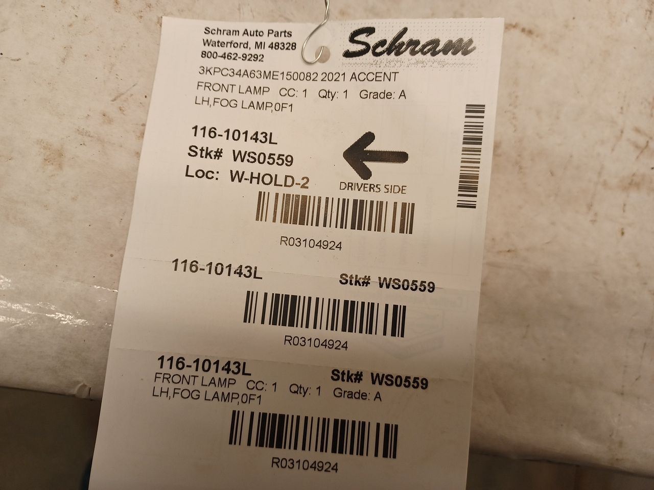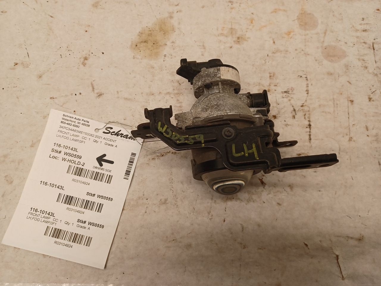 1923   Description LH,FOG LAMP,0F1 Mileage: 81000 This item will fit the following vehicles/applications: ACCENT 18-22 fog-driving (bumper mounted), L. **Illuminate the Way with Reliable Fog Light and/or Running Light!** **Schram Auto and Truck Parts - Fog Lights and Running Lights** At Schram Auto and Truck Parts, Inc., we recognize the significance of clear visibility in various driving conditions. Our **Fog Light / Running Light** not only enhances your safety, but it also adds a touch of style to your vehicle. We take pride in offering tested and inspected fog lamps, all in perfect working condition. As a trusted automotive recycling company since 1923, we provide quality original equipment fog lights that continue to serve an essential role in helping others repair, restore, and enhance their vehicles. Rest assured that all of our fog lamps have undergone testing and inspection to ensure their flawless performance. Please note that the fog lamps are sold without grilles or bezels, unless stated otherwise. Wear and scratches from normal use are expected on this item. To ensure the perfect fit, refer to the 'Fitment' section of this listing for precise compatibility. We strongly recommend confirming compatibility before making a purchase to ensure a seamless fit. **Your Questions Are Important** If you have any questions or need further information, please ask us before making a purchase! We're here to provide the details you need to make an informed decision. Illuminate the road ahead with reliable Fog and Running Lights from Schram Auto and Truck Parts, Inc. Join us in our commitment to providing top-notch solutions while enhancing your vehicle's safety and style. Vehicle 2021 ACCENT Mileage 81000 Part Grade A What's this?