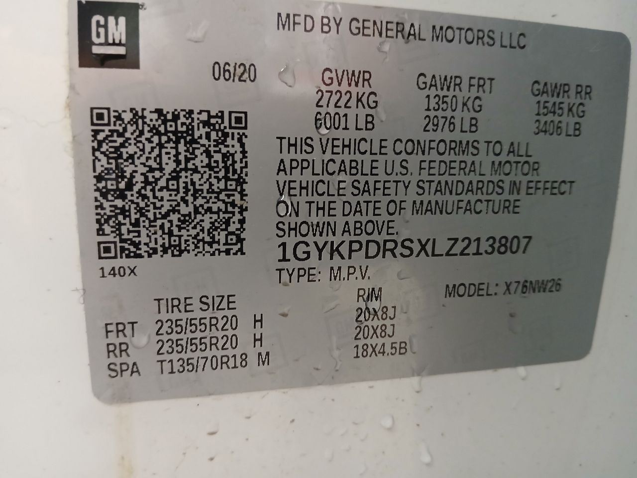 - VIN #: 1GYKPDRSXLZ213807