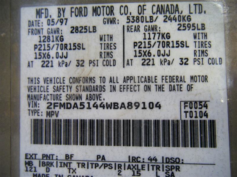 - Donor VIN: 2FMDA5144WBA89104