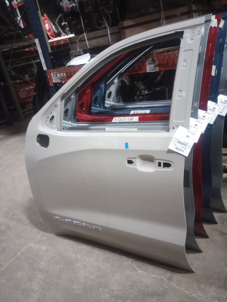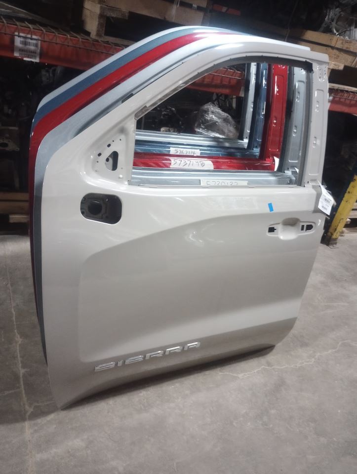1923   Description LH,TAN,G42,5S1,SHELL Mileage: 0 This item will fit the following vehicles/applications: SIERRA 1500 PICKUP 19 new style (mirrors mount on door skin), Crew Cab, L. SIERRA 1500 PICKUP 19 new style (mirrors mount on door skin), Double Cab, L. SIERRA 1500 PICKUP 20-25 Crew Cab, L. SIERRA 1500 PICKUP 20-25 Double Cab, L. SIERRA DENALI 1500 19-24 L. **Restore Your Vehicle's Access with a Reliable OEM Front Door** **Schram Auto and Truck Parts – Front Door Replacement** Since 1923, Schram Auto and Truck Parts has provided quality OEM components backed by trusted expertise. This **Front Door** restores function and security to your vehicle with a responsibly sourced, factory-original part. Perfect for collision repair or restoration. **What’s Included** Front doors are sold **complete** with glass and internal components unless otherwise noted. **Exterior mirror and interior trim panel are NOT included.** **Condition Notes** Expect typical wear such as scuffs, scratches, and rock chips from regular use. We do not guarantee paint match. **Professional repainting is likely required** for a factory finish. Major defects such as dings or deep scratches are highlighted with yellow body shop crayon. Some damage may not be marked at time of photography. Please review all images and read the Conditions and Options section carefully. **ARA Damage Codes** We use standardized ARA codes to describe the type, amount, and location of any damage. If unfamiliar with ARA codes, please consult your body shop or repair professional. **Fitment Responsibility** Fitment varies by trim and equipment. Use the part number, photos, and your VIN to confirm compatibility. Buyer is responsible for ensuring proper fit. Need help? Ask us. ARA URG PRP Member! Chad and our team are ready to help make sure this part is the right fit for your vehicle. Restore form and function with confidence—choose Schram Auto and Truck Parts for your next door replacement. Vehicle 2025 SIERRA150 Mileage 0 Part Grade A What's this?