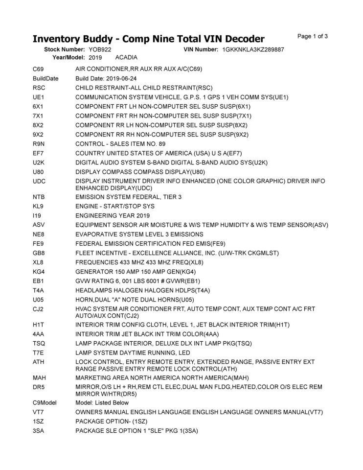 - Donor VIN: 1GKKNKLA3KZ289887