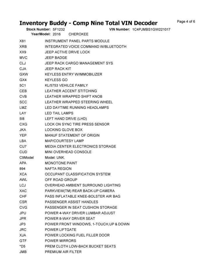 Description DONOR VEHICLE Model : CHEROKEE Year : 2016 Mileage : 157000 (0 = not available or unknown) Stock Number : 5F1232 Notes : LH,4DR,PW,L. This part will fit these makes and models with these options CHEROKEE 14-23 L. about uswarranty shippinghelp about us Chuck and Eddie's Used and New Auto Parts has been in operation since the 1940's. We've grown from a small family used auto parts dealer with one yard, to a substantial corporation that employs over 100 staffers, with three physical locations, and a state-of-the-art website. From these platforms, we sell and ship new auto parts and used car parts worldwide. Chuck and Eddie's plays an active role in our industry's associations. Our managers hold key positions within the Automotive Recycler's Association including L.A.R.A. (Ladies of the Automotive Recycler's Association) and the ARA Safety Committee. Experience the Chuck and Eddie's difference. Do not confuse us with an auto junkyard. We're a full service company ready to fulfill your new auto parts and used car parts requirements every time, while providing legendary customer service. We make it easy for anyone to order parts whenever they wish. warranty All parts are covered by our 6 Month Money Back Guarantee. If you have a problem with the part, changed your mind or the part does not fit, and need to return it please select "I CHANGED MY MIND" as your return reason. Since we offer free returns you will not be responsible for return shipping. Once you do that a label will be provided to you to return your item. shipping For items shipped via LTL Freight such as an engine, transmission, seat, transfer case, axle assembly. Our freight carrier requires a commercial business address with a loading dock or forklift to unload the truck. Most of our customers choose to ship directly to the shop that is installing their part as long as it is a commercial business address. If you cannot provide a commercial business address we offer a residential delivery service that can be purchased separately. For small items we ship they will ship with UPS or USPS with live tracking information. You will receive an email with tracking information as soon as your part ships. Please allow 1-5 business days for your part to arrive. help If you needed to return an item for any reason please select "I changed my mind" as your return reason. We offer quality tested auto parts.We also offer the best warranty program in the industry. Our knowledgeable staff is available to assist you with friendly service.We answer all questions promptly during normal business hours. If you have a question about a part please contact us BEFORE purchasing. We try to answer all messages within 24 hours.If we are unable to answer your questions before the listing ends the item will be re-listed again soon for you to purchase. -  -  SOCIAL MEDIA Copyright © 2020,Chuck & Eddies Used Auto Parts. All rights reserved.
