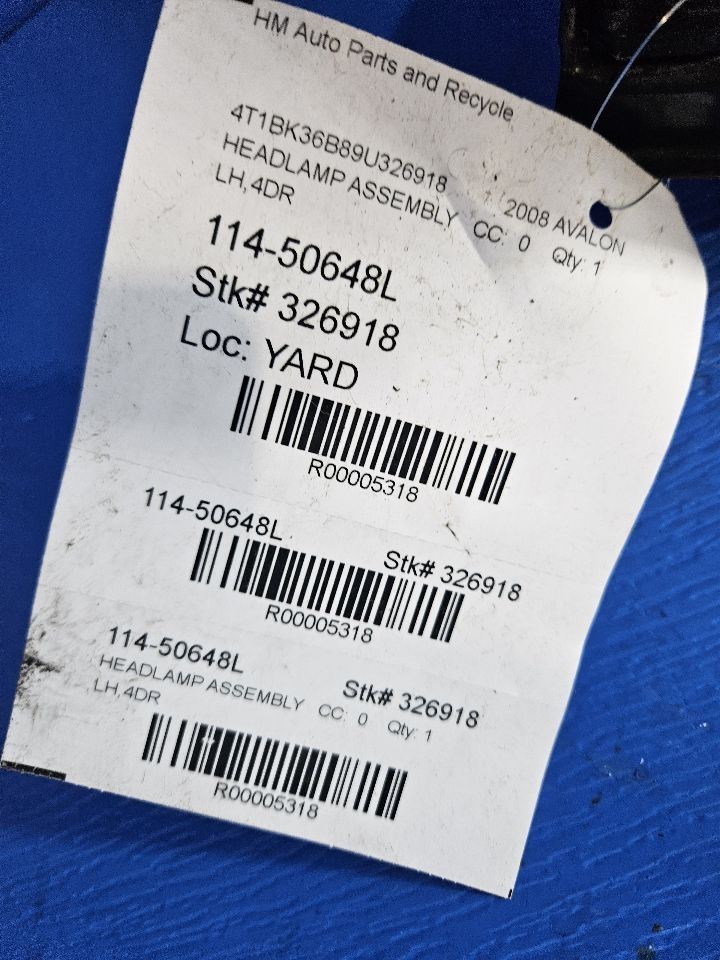 Driver Left Headlight Halogen Fits 08-10 AVALON 5318