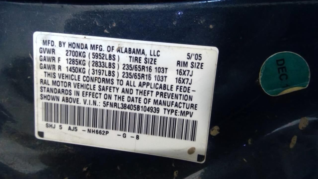 - VIN #: 5FNRL38405B104939
