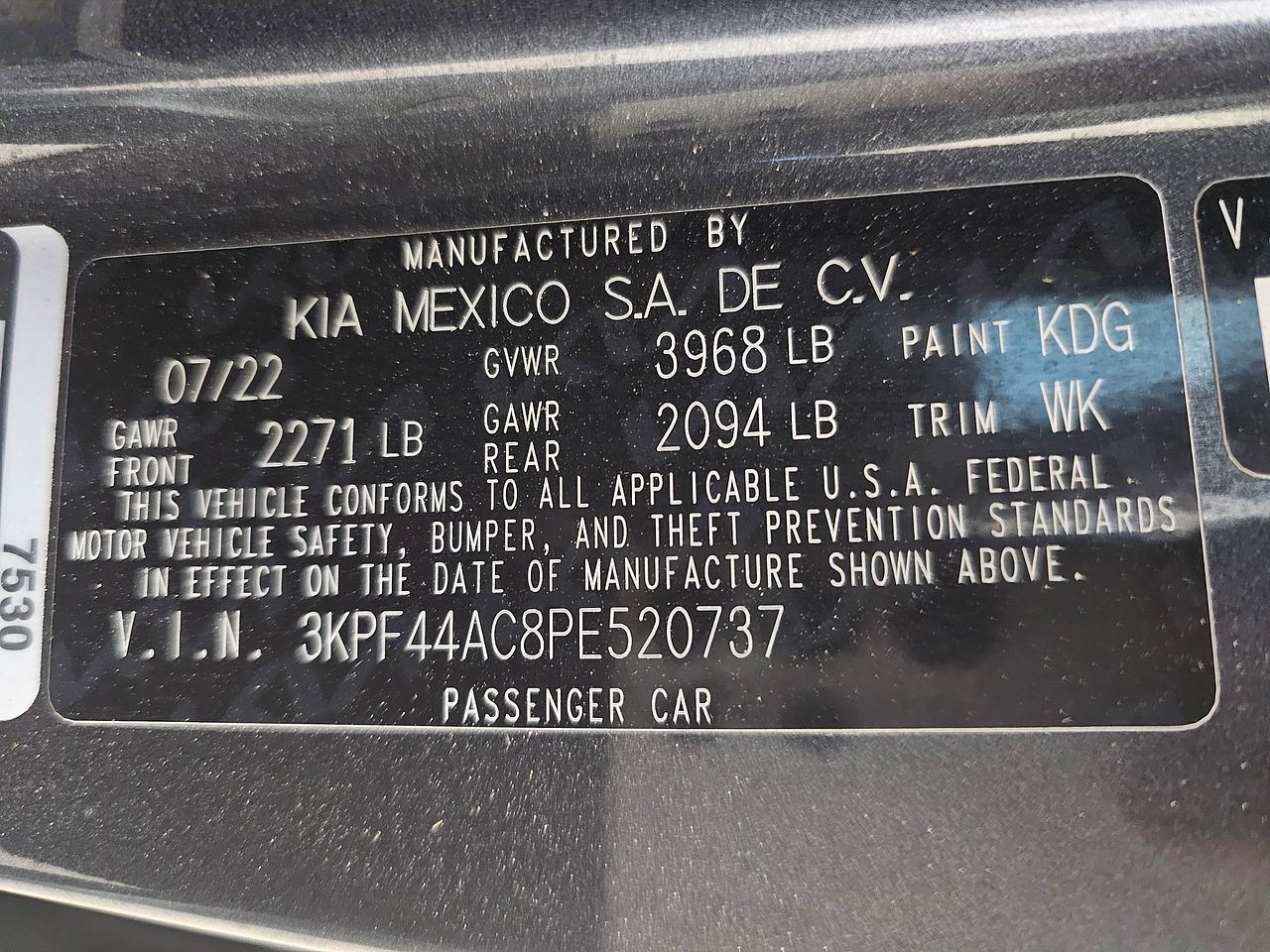 - VIN #: 3KPF44AC8PE520737