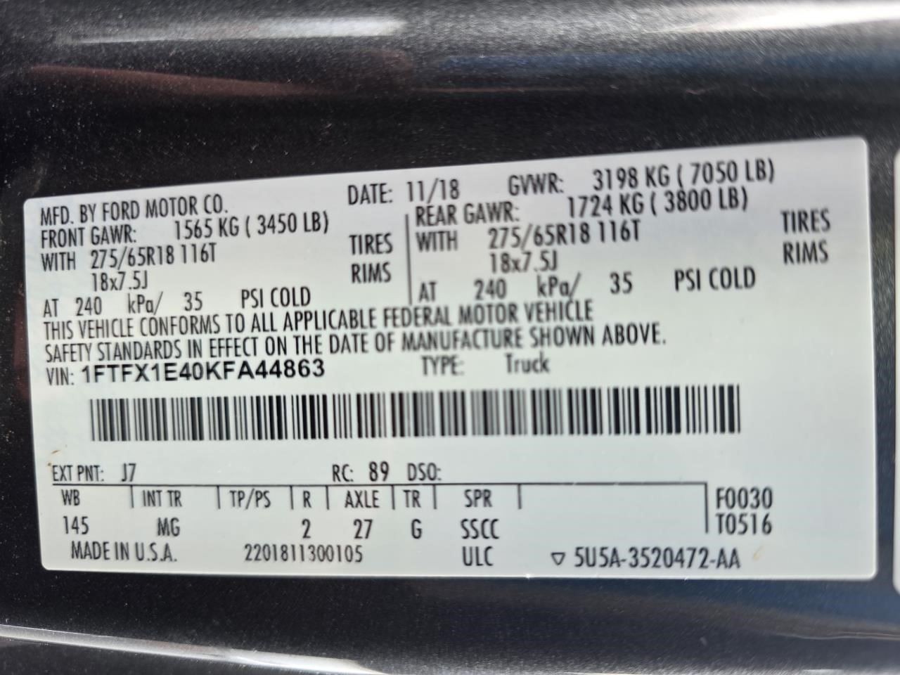 - Donor VIN: 1FTFX1E40KFA44863