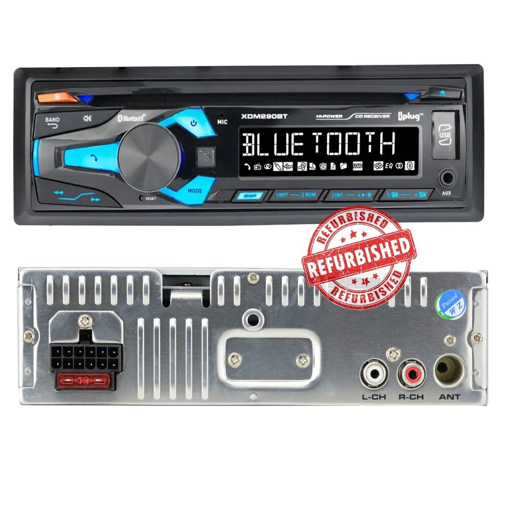 **Dual XDM290BT Car Stereo CD Player AM/FM Radio for 1997-2002 Jeep Wrangler** REFURBISHED XDM290BT Single DIN CD Receiver AM/FM Radio - Built-in Bluetooth for hands-free calling, audio streaming, and player control. Built-in microphone. - Easy access voice activation button to activate Siri® or the Google Assistant™ on your phone - Dual iPlug Smart Remote app via Bluetooth (Apple®/Android™) - AM/FM Receiver with 30 Station presets (18FM/12AM) - 10 Character LCD - Front panel USB Input (1A charge) - Front panel 3.5mm AUX input - MP3 playback from CDs and USB drives - 1 Pair of RCA preamp outputs (front or rear) - 7 Preset EQ curves (Pop, Jazz, Classic, Beat, Rock, Flat, and User) - 2 Band tone control (Bass/Treble) - 200 Watts (50 Watts x 4) Dash Kit (CRB630): - For Single DIN aftermarket car stereo receiver - For Dodge/Jeep Models Wiring Harness (CWH-634): - Plugs into factory wiring. Compatibility: The kit is specifically designed for Dodge RAM 1500 /Jeep models from 1994 to 2001. It is compatible with the following vehicle: - Dodge: Ram 1500 1994-2001 - Jeep Wrangler 1997-2002 - Jeep Cherokee: 1997-2001
