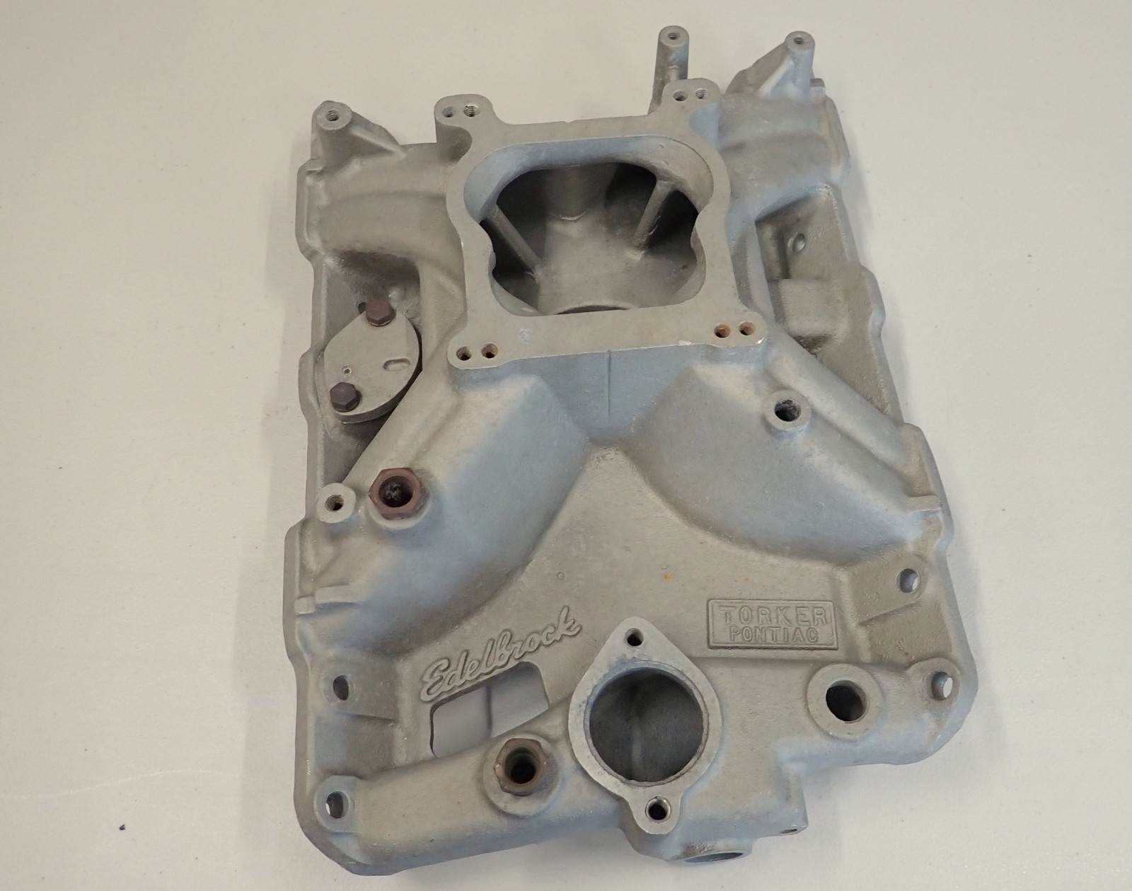This is a vintage Edelbrock Torker Pontiac aluminum intake manifold. The Edelbrock part number is 2720 which is cast into the underside of the intake. This intake fits 1965-1979 Pontiac V8 engines. Please confirm your specific application. This intake is in good condition as shown. The aluminum is in bare aluminum finish with no paint or coatings. All threads are in good condition with one professionally installed helicoil in a water neck mounting thread. The intake has no cracks or welds. There is also no porting. The cooling ports are in good condition with light corrosion that won't cause any sealing issues. This is simply a very nice original Edelbrock Torker Pontiac intake that is ready to install and enjoy. This is your chance to own the very nice original Edelbrock 2720 Torker Pontiac aluminum intake manifold. Don't miss it! Check out my other listings for more rare and hard to find parts. Shipping: The Domestic shipping cost shown is for the Continental US. Alaska, Hawaii, and territories please inquire for a shipping cost.