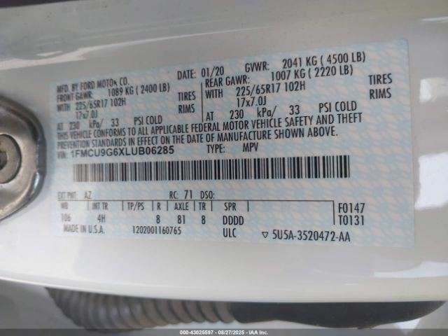 - VIN #: 1FMCU9G6XLUB06285