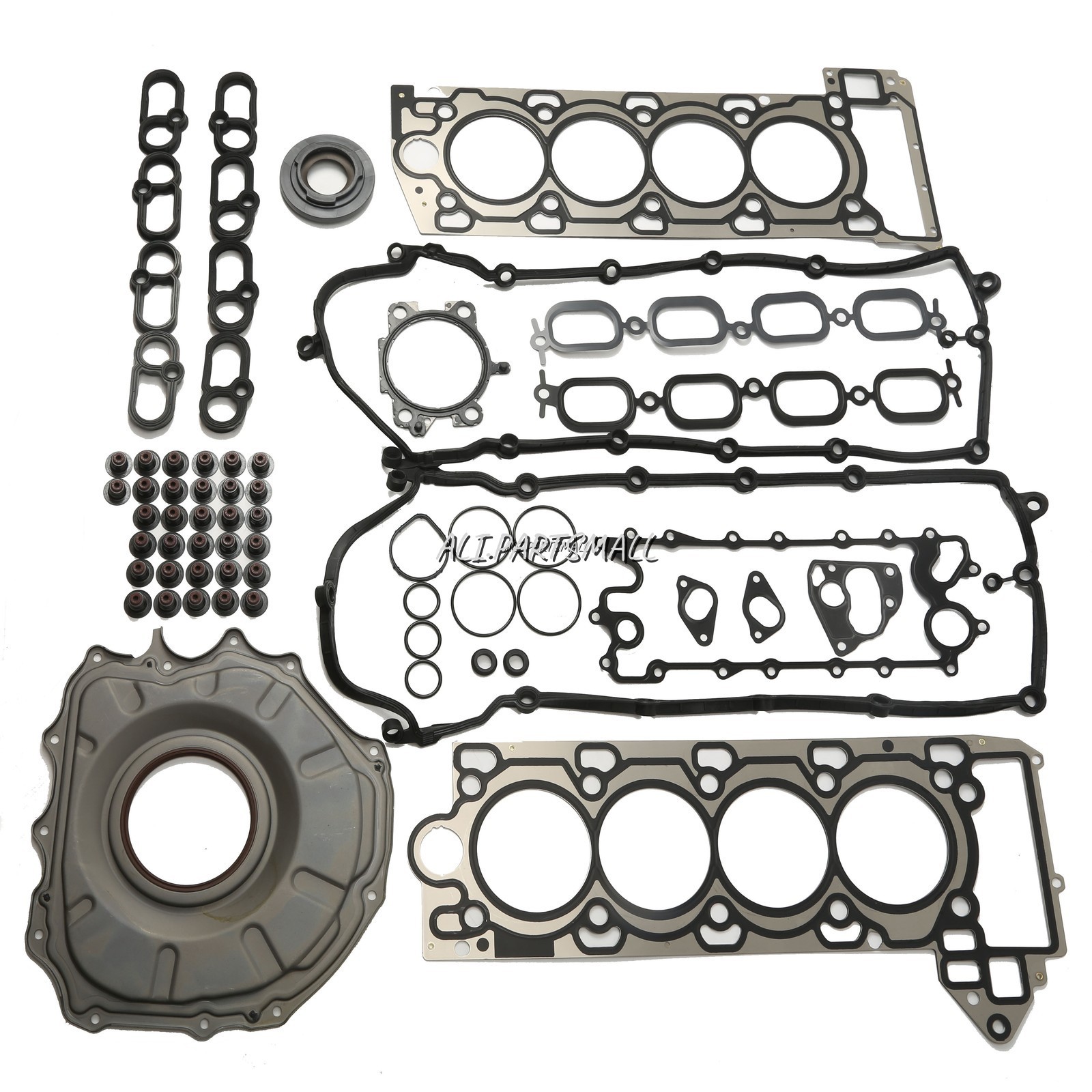 **Engine Cylinder Head Gasket Kit For Jaguar F-PACE Land rover 5.0T 508PN 508PS** **"Fit Car Model" is for reference only,Please send us VIN code to check if our item fits your car before purchasing !!** * * * - **OE:** LR010706 LR010735 LR010770 LR010789 LR010882 LR01 1220 LR01 1562 LR011585 LR011586 LR014345 LR026141 LR026142 LR048165 LR078819 AJ811449 AJ811453 AJ811904 C2D3525 C2D3524 C2D3527 LR049370 LR049370 AJ811612 AJ813609 AJ811576 AJ811590 C2D3526 LR084186 LR084186 LR105294 AJ812859 AJ813803 AJ813952 LR084185 LR105293 AJ812860 AJ813804 AJ813953 LR011578 AJ811575 AJ811575 LR038164 LR010753 LR054369 AJ811473 AJ813623 - **Other Part Number:** AJUSA:10213800 GLASER:H85120-00 VICTOR REINZ:61-10884-00 ELRING:966.200 ELWIS ROYAL:0013001 OSSCA:49039 WILMINK GROUP:WG1751642 - **Package includes** 10X Rubber Pack 1X Crankshaft front oil seal PTFE 1X Oil compartment seal gasket 1X Oil cooler gasket 1X Valve cover gasket-I long 1X Valve cover gasket-R short 4X Spark plug gasket right 2X Water pump gasket 1X Intake Manifold Gasket-R 5.0T short 1X Intake manifold gasket-L 5.0T long 4X Spark plug gasket left. 1X Cylinder gasket short right +0.75 1X Cylinder gasket long left +0. 75 1X Throttle liner metal injection 32X Valve oil seal - **Description:** Material: Metal & Plastic Warranty: 1 year Color: Silver Fitment Type: Direct Replacement Fuel type: Gasoline Engine Installation Location: Inside the engine - **Notice:** Our sales price does not include customs taxes and fees. buyer will bear these costs. Each country has different customs tax threshold, so you need know your country's tax policy. **Fit Car Model**:      * * * On Dec 2, 2025 at 20:07:10 PST, seller added the following information: