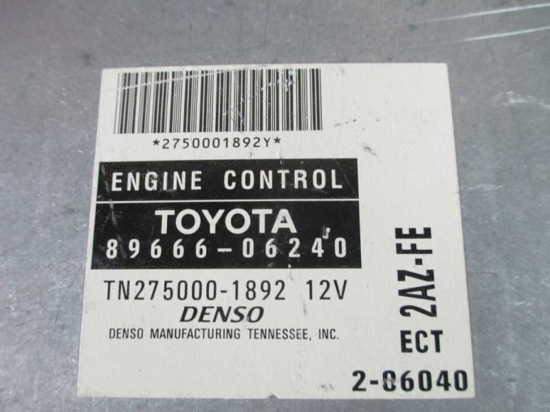 Description Donor Vehicle VIN: Model: Year: 0 Mileage: 0 (0 = not available or unknown) Stock Number: UNA14 Store Number: 1 Part Detail Part Grade: A Part Category: U Part Placement: Notes: 8966606240 This part will fit these makes and models with these options CAMRY 02 Electronic Control Module; (by glove box), 4 cylinder, AT, from 3/02, ID 89661-3T550 (with theft immobilizer) CAMRY 02 Electronic Control Module; (by glove box), 4 cylinder, AT, from 3/02, ID 89666-06240 (with theft immobilizer) CAMRY 02 Electronic Control Module; (by glove box), 4 cylinder, AT, thru 2/02, w/immobilizer WARRANTY / GUARANTEE # **Please read before placing an order** Parts from 1998 and up vehicles are complicated and anti-theft systems have further complicated installation of used or new modules. Replacing an ECM in most cases require re-programming by a qualified Technician or high tech automotive locksmith. In most makes and models dealerships tools are locked by the manufacturer to prevent installation of used modules into a vehicle. Please verify installation procedures before purchase. We are not able to answer any questions related to installation. **_Buyers need to qualify the reprogrammers of the ECM to make sure they have the required tools or knowledge for each vehicle applications. If they are unable to program they will condemn the ECM as defective._** Buyer hereby acknowledges that the sellers' liability is limited to the price of the item sold. **Returns:** All items sold carry 30 days return policy. Returned item absolutely must be in exact same condition of listed item, please ensure you package item carefully since you are responsible for condition of purchased item. If item purchased in error or no longer needed 20% re-stocking fee will be applied, shipping cost is not refundable. In case of DOA part, please contact us immediately, We reserve the right to exchange DOA part, if available, otherwise we will refund your account upon receiving the purchased item back. Buyer pays for return shipping costs in any situation. Most late model ECMs have to be initialized and programmed in your vehicle to function. Buyer cannot condemn the module as defective for this reason and it is buyer's responsibility to foresee such tasks **Compatibility:** Buyer is ultimately responsible to verify fitment of purchased part. Please do your homework before purchasing. Most of problems related to compatibility could be avoided if you match your part number to ours. We only sell modules based on OEM part numbers. **Shipping:** We ship daily except major holidays. All orders are shipped the same or the next day of payment. Fast and Free shipping. **Customer satisfaction is our NUMBER ONE goal; we will work with you to provide the best possible service. Including Alaska, Hawaii, Puerto Rico, Guam International shipping available. Pick up at our facilities is available. Please email us prior to your purchase to arrange pick up. Items will be shipped at same or next day of purchase. We try to answer all messages within 24 hours. If we are unable to answer your questions before the listing ends the item will be re-listed again soon for you to purchase. **Core Charge.** Core is an acronym for ‘Cash On Return’. A core charge is sometimes applied to rebuildable parts such as engines or alternators that can be redeemed for a portion of their original price. If the part you are purchasing has a core charge applied, it will be noted in the description. **Parts Grading.** A standard code system is used to communicate the condition and quality of a part between automotive recyclers, automotive repair shops, and insurers. Knowing how these codes are used will help you understand whether the part meets your expectations before you buy it and what you can expect from the part when you receive it. A Grade\- The highest quality part. It is of low miles and/or exceptional condition for its age.B Grade\- The second level quality part. It is of average miles and normal condition for its age.C Grade\- The third level quality part. It has high miles and/or light damage.No Grade\- A part that has not yet been graded. To learn more about Parts Grading click here.