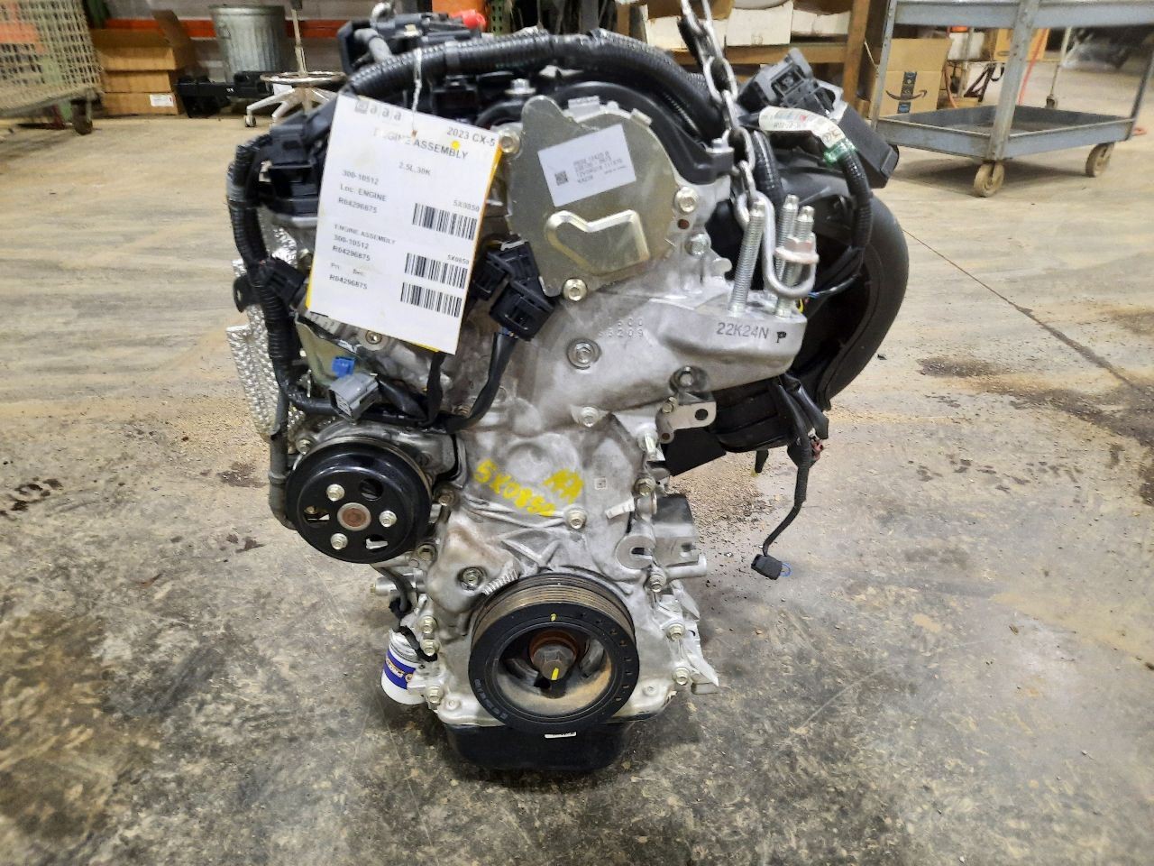 Item Description **6 MONTH WARRANTY!! 60 DAY NO HASSLE RETURNS!!** **This for a USED OEM Engine / Motor Assembly Assembly pulled from a 2023 CX-5 with 30000 actual miles on it.** **Here are our part notes about this specific part:** **ET,2.5L,30K** **Our Part #: 300-10512, 4296875** **Our Stock#: 5X0850** Please see the fitment section below to make sure this will fit your vehicle. Pay special attention to any options listed!!! In some cases, it may only fit vehicle with certain options or specific ID#s as listed below. **MAZDA 3 19-20 2.5L, VIN M (8th digit)** **MAZDA 6 18-21 (2.5L), VIN M (8th digit, naturally aspirated)** **MAZDA CX-30 20 2.5L, VIN M (8th digit)** **MAZDA CX-5 18 2.5L, VIN M (8th digit)** **MAZDA CX-5 19-23 (2.5L), VIN M (8th digit, naturally aspirated)** Whats Included? Whats Included? FAQ/ Help Shipping Payment Returns/Warranty #### Whats Included? ``` Here is a short description of what will generally be included with your item. If you would like more information or are unsure if something will come with your item, PLEASE ASK!! A/C Compressor: Includes the clutch/pulley assembly A/C Condenser: Sensors and hoses are not included ABS Units: Include the ATTACHED electronic module unless otherwise noted Alternator: Includes the pulley. Any brackets are not included Axle/CV shaft: Does not include the axle nut Blower Motor: Include the squirrel cage/fan blade Caliper: Includes the bracket and slides. Slides are not covered under warranty Column Switch: Includes wiring (if applicable) up to the first point it can be unplugged Control Arm: Includes the ball joint and any bushings Coolant Overflow Bottle: Cap is included Cowl Vent Panel: See Our Part notes, often sold as one side only Differential Carrier: Does not include axles Door Trim Panel: Includes handle and armrest. Does not include window/lock switches Engine: Included for convenience unless otherwise noted. These parts are not covered under warranty: Intake manifold, fuel injectors, oil pan, sensors, water pump Not included: Throttle body, Turbo, wiring harness exhaust manifold (may be left on in certain cases) Exhaust Manifold: Does not include turbo where applicable Fan Assembly: Includes motors, shroud, and blades. Fuel injectors: See our part notes Fuel Filler Door: Includes hinge. Does not include bolts/hardware Fuel Pump: Includes sending unit and any molded hoses that are non-removable Headlight: Brackets are included unless otherwise noted. HID headlights include the bulbs and ballast Hub: Includes wheel studs Ignition Coil(s): See part notes Interior Rear View Mirror: Does not included bracket glued to windshield Jack: See part notes. If noted as assembly, it will include the lug wrench Mass Airflow Sensor: Does not include housing unless pictured Power Steering Pump: Includes pulley and ATTACHED reservoir. Remote reservoirs and brackets will not be included Power Steering Gear: Includes pitman arm Rack and Pinion: Includes tie rods but they are not covered under warranty Radio: Pay special attention to our fitment description. Often times radios are more than one piece and we sell them each separately Spindle/Knuckle: Does not include hub unless noted Starter: Includes solenoid Strut: Struts are left assembled and include top plate, spring, and dust boot (dust boots on used struts are rarely in perfect shape) Stabilizer Bar: Does not include links or bushings Sunvisor: Does not include clip Taillight: Pay special attention to fitment as we list the trunk lid mounted taillights as well as the corners. Does not include bulbs Temperature Control: Includes all knobs, buttons, and sliders Throttle Body: Includes sensors but they are not covered under our warranty Transmission: Automatic transmissions include torque converters and sensors. Many newer transmissions require a relearn/programming procedure. Manual transmissions do not include any part of the clutch system. Transfer Case: Does not include electric shift motor Washer Reservoir/Bottle: Includes cap unless noted Wheel/Rim: Does not include center cap, tire, or lug nuts Window Regulator: Does not include motor unless noted (most are noted with motor) Wiper Motor: Does not include arms or transmission unless noted Wiper Transmission: Does not include motor or arms unless noted ``` FAQ/ Help #### FAQ/ Help ``` Will this fit my vehicle? Is this the right part? This is the most common question that we get. The fitment information can be confusing if you don't buy replacement parts everyday. Please contact us if you are unsure!! We try to respond to questions as quickly as possible and we are more than happy to answer any questions as best as we can. In order to speed up the process, it is very helpful, but not required, for you to send us your full VIN number along with your question. It looks like its the same color as my car, how can I tell for sure? The best way is to match the manufacturer paint code. Most of the time we include the paint code in our part notes. If you don't know what a paint code is or where yours is located, please feel free to ask. We are happy to help. I only see photos of the vehicle and not the actual part you are selling. Can you send me some? Our most recent listings include actual photos when we can provide them. If you would like an actual photo, we are more than happy to take one after the purchase for your approval before the part ships. In certain cases we will take actual photos before a purchase is made. This is on a case by case basis. Send us a message and we will let you know if it is possible for us to do so I see a wheel that says it is "B" condition, what does that mean? Grading of parts is a very subjective process but we do our best to keep it uniform. Here is a brief description of wheel grades: A Condition, A-COND = This is the highest grade used wheel. It will have very minor imperfections but will be in better condition than 90% of vehicles on the road. B Condition, B-COND = This wheel will have some cosmet