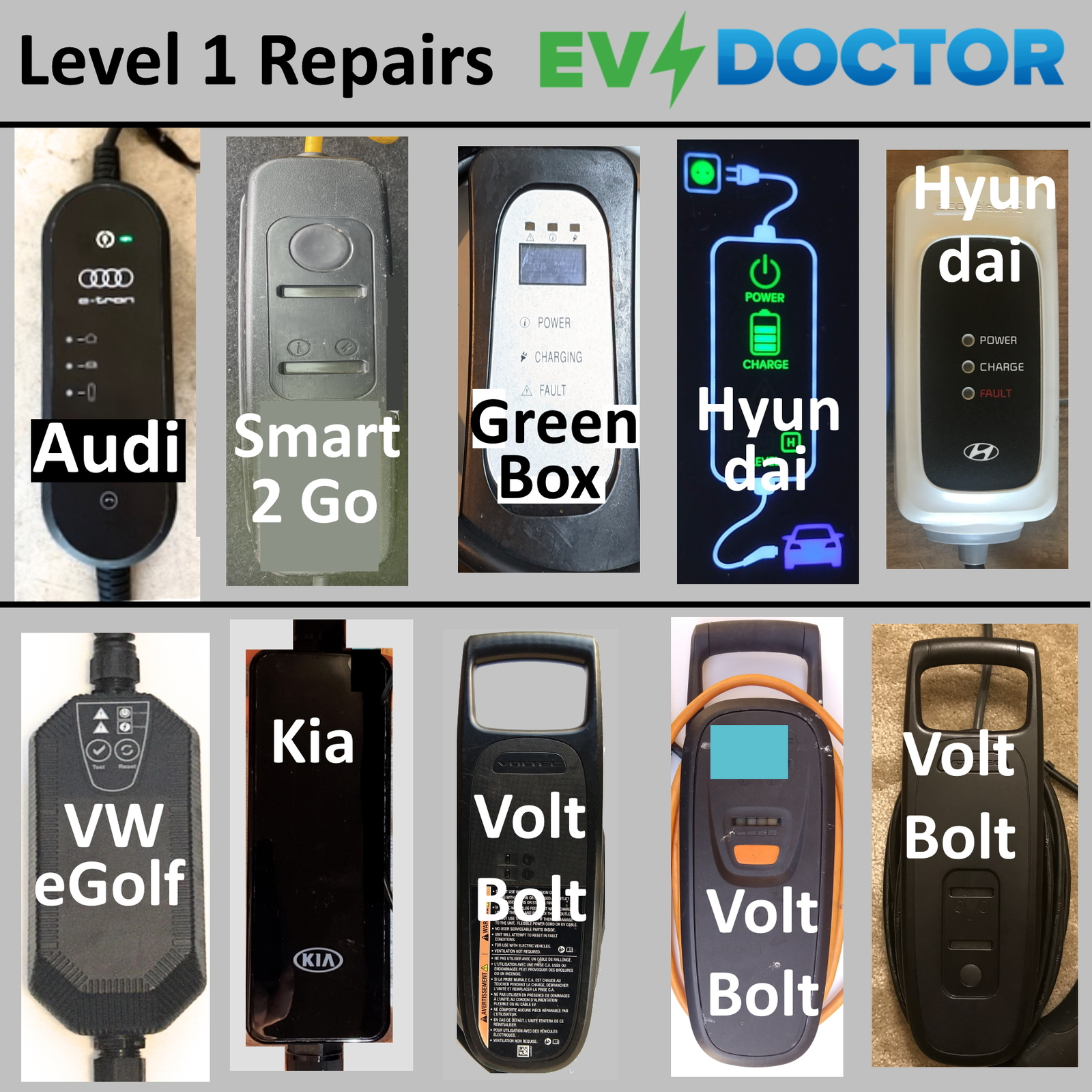 EV’s Save the Planet - Thank You for Protecting the Earth EV Doctor is well known for their expertise in Electric Vehicle and high technology design and development. Their engineers have more than 50 years of electronic product repair experience and have designed and repaired thousands of charging circuits. The Low Cost Repair Service (\*see additional costs below) will fix your portable EVSE electric vehicle car charging station for - Level 1 $80, Level 2 $100. No payment is due until the repair is complete. We have a 95% success rate. If we can't fix your EV Charger there is no cost however if there is nothing wrong with your EV Charger there is a minimum $40 charge. Return shipping and handling \- Level 1 Chargers $35, Level 2 Chargers $50, Heavy Level 2 chargers $75. . \\* Additional Costs - Damaged cables, connectors or major components may incur an additional charge. You will receive a cost estimate before the repair. We will send a questionnaire to determine if your EVSE is repairable or browse EvseRepairUpgradeQuestionnaire (.com) . Loaner Program: \- We have a limited number of Level 1 EVSE's in a loaner program. Contact us for details. Eligible EVSE Chargers: This offer applies to the original equipment Level 1 chargers that came with your vehicle and the most Level 2 stations/portable chargers. See Photos for some of the repairs that we have completed. SHIPPING We offer _**Fast shipping**_ on all orders! Most orders will be shipped within 1 working day of receiving payment (Monday-Friday) via USPS First Class or Priority mail. You should receive your order in 2 - 3 days. Please check the listing for added details. _**Important:**_ Please be sure to have someone available to receive your shipment so that it will not be lost or stolen as we do not assume that responsibility. RETURNS If you are not 100% satisfied with your purchase, you can return the product and get a refund or exchange the product for another one of similar value. You must request Return Material Authorization (RMA) number within 30 days from the date you purchased it. If the product is not defective then you will have to pay for the return shipping. If the product was shipped for free or is not in 'Like New' condition or the original packing material is missing you will be charged a restocking fee. This waiver includes all products sold or repaired by EVDoctor 4Earth (.com). (™ are trademarks on their respective companies) EVDoctor products are warranted against defects in material or workmanship. See the listing for details on the product. Damage to cables or connectors or due to misuse or acts of nature (water, fire, etc) are not covered. This warranty covers repair and/or replacement only and does not assume any liability for consequential damages. 200410** EV’s Save the Planet - Thank You for Protecting the Earth EV Doctor is well known for their expertise in Electric Vehicle and high technology design and development. Their engineers have more than 50 years of electronic product repair experience and have designed and repaired thousands of charging circuits. The Low Cost Repair Service (\*see additional costs below) will fix your portable EVSE electric vehicle car charging station for - Level 1 $80, Level 2 $100. No payment is due until the repair is complete. We have a 95% success rate. If we can't fix your EV Charger there is no cost however if there is nothing wrong with your EV Charger there is a minimum $40 charge. Return shipping and handling - Level 1 Chargers $35, Level 2 Chargers $50, Heavy Level 2 chargers $75. . \* Additional Costs - Damaged cables, connectors or major components may incur an additional charge. You will receive a cost estimate before the repair. We will send a questionnaire to determine if your EVSE is repairable or browse EvseRepairUpgradeQuestionnaire (.com) . Loaner Program: - We have a limited number of Level 1 EVSE's in a loaner program. Contact us for details. Eligible EVSE Chargers: This offer applies to the original equipment Level 1 chargers that came with your vehicle and the most Level 2 stations/portable chargers. See Photos for some of the repairs that we have completed. Copyright © EVDoctor4Earth 2021, Rev 211202  #1 EV Expert Fast Shipping 24/7 USA Support Quote only - Low Cost Repair - - All EV Chargers - - Fast turn-around. EV’s Save the Planet - Thank You for Protecting the Earth EV Doctor is well known for their expertise in Electric Vehicle and high technology design and development. Their engineers have more than 50 years of electronic product repair experience and have designed and repaired thousands of charging circuits. The Low Cost Repair Service (\*see additional costs below) will fix your portable EVSE electric vehicle car charging station for - Level 1 $80, Level 2 $100. No payment is due until the repair is complete. We have a 95% success rate. If we can't fix your EV Charger there is no cost however if there is nothing wrong with your EV Charger there is a minimum $40 charge. Return shipping and handling \- Level 1 Chargers $35, Level 2 Chargers $50, Heavy Level 2 chargers $75. . \\* Additional Costs - Damaged cables, connectors or major components may incur an additional charge. You will receive a cost estimate before the repair. We will send a questionnaire to determine if your EVSE is repairable or browse EvseRepairUpgradeQuestionnaire (.com) . Loaner Program: \- We have a limited number of Level 1 EVSE's in a loaner program. Contact us for details. Eligible EVSE Chargers: This offer applies to the original equipment Level 1 chargers that came with your vehicle and the most Level 2 stations/portable chargers. See Photos for some of the repairs that we have completed. SHIPPING We offer _**Fast shipping**_ on all orders! Most orders will be shipped within 1 working day of receiving payment (Monday-Friday) via USPS First Class or Priority mail. You should receive your order in 2 - 3 days. Please check the listing for added details. _**Impo