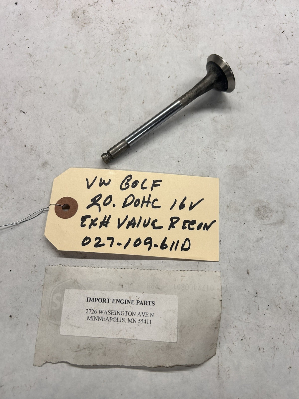 EXHAUST VALVE \*RECON\* FITS VOLKSWAGEN GOLF DOHC 16V 9A 1990-1993 027-109-611D \*RECON\* ALSO FITS VOLKSWAGEN PASSAT/JETTA 2.0DOHC 16V "9A" 1990-1993 ALSO FITS VW GOLF/JETTA/SCIRACCO 1.8 DOHC 16V 1986-1989 ALSO HAVE NEW EXHAUST VALVE RX35069 \*\*\*\*\*THESE ARE USED VALVES, INSPECTED AND REGROUND\*\*\*\*\*\* \*\*\*ALSO HAVE USED INTAKE VALVES, 027-109-601H\*\*\*\* NEW INTAKE RV35065 ALSO HAVE LOWER SPRING SEATS, TWO DIFFERENT STYLES, SEE PIC'S ALSO HAVE VALVE SPRINGS 078-109-633A RETAINERS 027-109-641 KEEPERS 027-109-651 PLEASE MAKE SURE OF YOUR NEED, USED PARTS ARE NOT RETURNABLE, QUESTIONS? CALL ME ALL PART LISTED ON MY SITE ARE ON MY SHELF, NO DROP SHIPS FROM VENDORS PLEASE CHECK CATALOG FOR CORRECT FITMENT, QUESTIONS? CALL ME