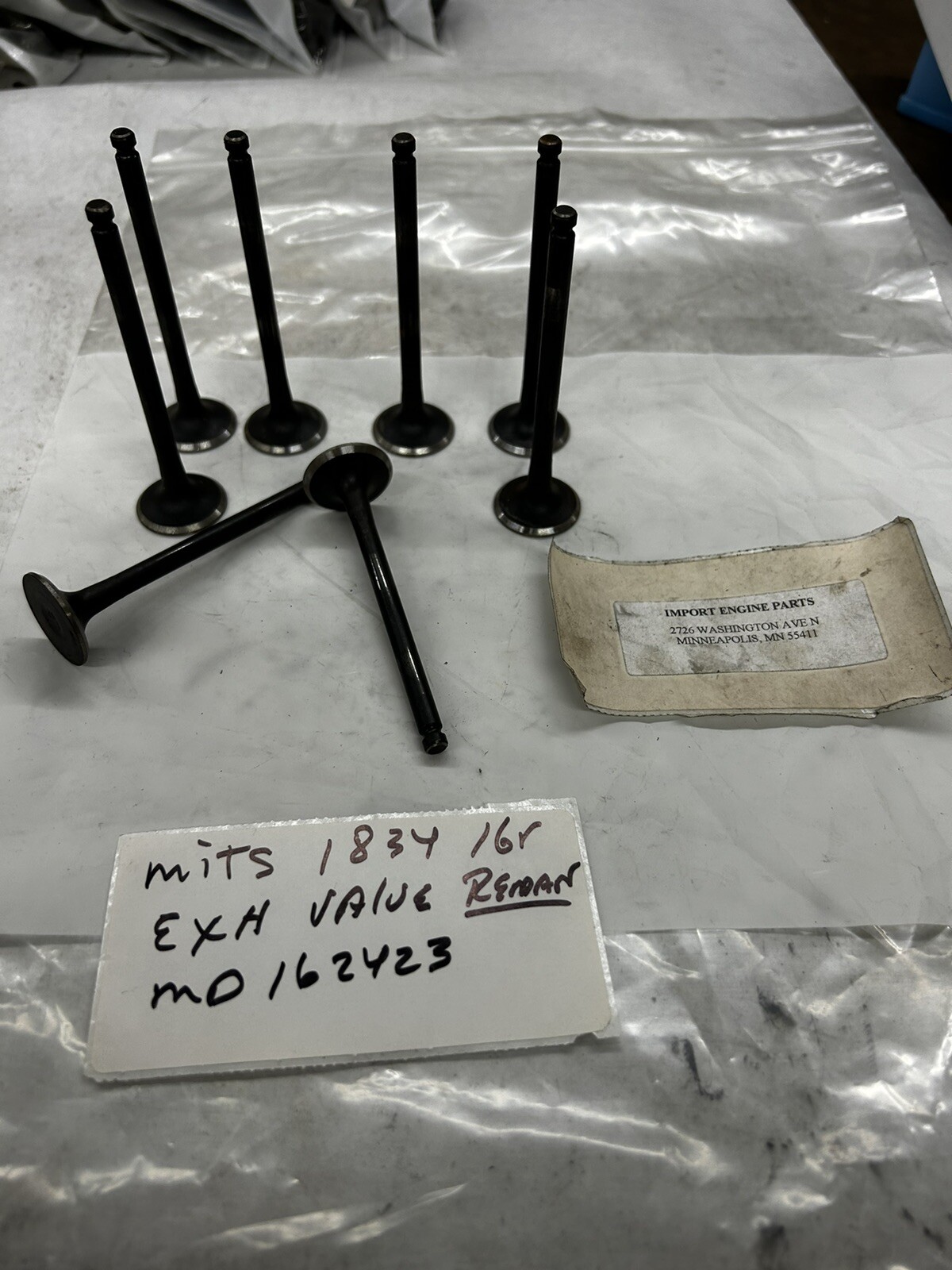 Exhaust Valve REMAN Mitsubishi Expo/Expo LRV/Mirage/Summit SOHC 16V 4G93 1834cc 1992-2002 MD162423 Also Fits Colt/Colt Vista/Summit 1834cc "4G93" 1992-1996 \*\*VALVES ARE SOLD AS A SET OF (8)\*\* THESE VALVES ARE "OE" MITSUBISHI Head Size 1.063 or 27.0mm Length 4.480 or 113.8mm Stem Size .236 or 6.0mm Also Have Intake Valve MD162422 IV119 VN924 \*\*\*\*EVERY PART NUMBER I HAVE LISTED ON E-BAY IS ON MY SHELF,,NO DROP SHIPS\*\*\*\* \*\*\*PLEASE CHECK PART NUMBER AND APPLICATION BEFORE ORDERING\*\*\* ANY QUESTIONS,PLEASE CALL TO AVOID PROBLEMS WITH PARTS,THANK YOU