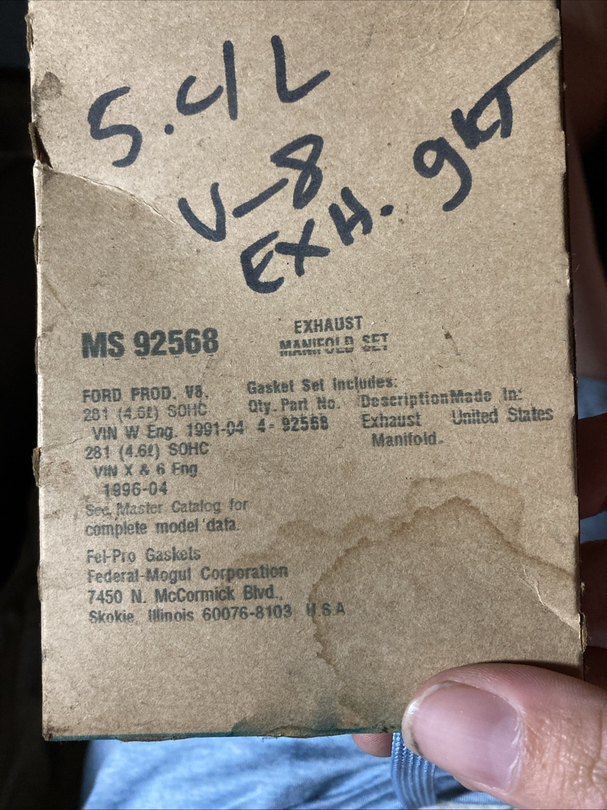 Fel-Pro MS92568 Exhaust Manifold Gasket Set For 1999-2011 Ford 5.4L-V8 As Seen. Condition is Used. Shipped with USPS Ground Advantage.