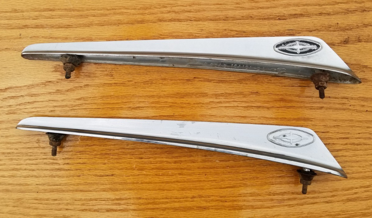**NO****RETURNS** **& CALLING US LIARS BY CLAIMING "item not as described"!** **Or you will star in one of our YouTube video's and be** **permanently** **blocked!** **See Our 1%ers section below.** **Just in 63 Galaxie** **This Listing is for**...Top Fender trim Ornaments...Nice shine and reflection through minor scuffs/scratches/very little pitting as common on vintage trim. **No trim or other parts included.** **Parts may not be perfect but might be nicer than yours.** Hard to find! **Other parts pictured may be available in other listings.** **No other trim or parts included.** **So if you need something** **search our listings or store, if you don't find what you are looking for** **let us know.** **DO NOT ASK "HOW MUCH" Save us all the time, include a reasonable offer with your inquiry.** **Parts look good to us to restore, but look at pictures,****be your own judge, and do your own fitment research before purchase...no refunds, returns, guarantees, or warrantees expressed or implied.** **Shipping** **Shipping listed on oversize items is just an estimate, good for about half the country, and** **varies** **by location.** **We can get pallets to most places for under 200.** **If its big, no, shipping isn't a buck...you can guess in the 1000 range for complete cars.** **We do ship some things we sell if we have more than one reason to head that direction.** **1%ers Disclaimer** **By purchasing you are agreeing to these terms!** **NO****RETURNS** **& CALLING US LIARS BY CLAIMING "item not as described"!** This means no one percenters. As such, the 99% have the realization that the item they are buying is dirty, used, old and may have idiosyncrasies to match, and they not only appreciate that, but enjoy the thrill of the risk and embrace it all as part of the items individual story, character, and charm! Disgusting! So guess what? All that leads to is a item cost mark up and a lack of transparency in a break down of what you are actually paying for, all because of being duped by the propaganda sound of "free shipping". So don't even attempt in the notes of an offer to say "including shipping" or "combine shipping". So if you want "free shipping" or "combined shipping" do the 3rd grade math...subtract the shipping from the items asking price and offer that instead, then you can see what you are actually asking us to accept in real numbers, because shipping is NEVER FREE.Moreover, since items are not drop ship sellers so we have no idea of exact package sizes and weights, we can only estimate a shipping cost, we win some we loose some, when we loose by a few bucks we cover it, when we win by a few bucks we consider it making up for lost ground on the loses, and we consider it as a couple bucks handling. We are not shipping factory packaged blenders here. We have to source boxes and packaging material from several locations, store the boxes, then many times cut boxes to fit in an effort to artfully balance protecting your item while keeping the package dimensions inside specified shipping girth, and in cases where it still must go freight, we have to customize/build pallets for your order to meet the various shippers ever changing specifications. So...if you are a one percenter, this is for you! The described item is as pictured, if a picture is worth a thousand words, do not ask us to describe details or what condition the item is in beyond our purposefully short description of what the listing is for. Opinions vary wildly, and we certainly do not have the time to get to know all the idiosyncrasies of your project tastes and goals, in order to explain what is relevant to only you, that is obvious in pictures. You could be a Rat Rodder searching for a rusted out part that is missing on your Shock Rod, or a concourse restorer, or anything in between, we have no way of knowing. Also, items are many times pictured on the car, so READ THE SHORT DESCRIPTION of what the listing is for, do not assume because you think its related its included. "But it was in the picture." Yea, we picture other parts of the car so you can see the general condition, so the whole car was in the picture...did ya think the whole vehicle was included? READ THE SHORT DESCRIPTION. Furthermore, titles are just key words for ever changing search algorithms, if you don't understand that, go research it on Google. Many times we add words to titles because we see our customers using parts in an other than factory application, this does not mean we are parts interchange manuals, know you're own vehicle! So to be clear, the parts you are looking at may be between 30 and 80+ years old and may look like they came out of Oscars the Grouches residence, being dusty/dirty, perhaps even having Charlotte's web inside, feasting on dead flies. They probably came from abandoned vehicles in ungodly locations, which means, they were left to the elements and rarely moved, so sun fading, wind chapping and who knows what else may have occurred. When they were moved, they were drug by chains and tow straps, or pushed by tractors(with a tire between them if they were careful) by tired dirty farmers who just wanted to get the vehicle out of their way. So by purchasing, the buyer acknowledges they have received pictures of all items to their satisfaction, have seen they are rusty, dented, dinged, pitted, peeling, fading, cracking, torn, deteriorated, broken, smelly, dirty, bug and web infested used parts off of old vehicles that were abandoned to the elements and may even have the afore mentioned damage/rust/etc. that may not have been visible as with personal inspection, however, despite all this, the buyer has inspected pictures to their satisfaction, calculated their fitment and application, and has negotiated prices on these parts, realizing they are taking a calculated risk. No returns, guarantees, warrantees, charge backs, or refunds have been expressed or implied. All said, the buyer realizes, that if we're selling it, its nothing short of 