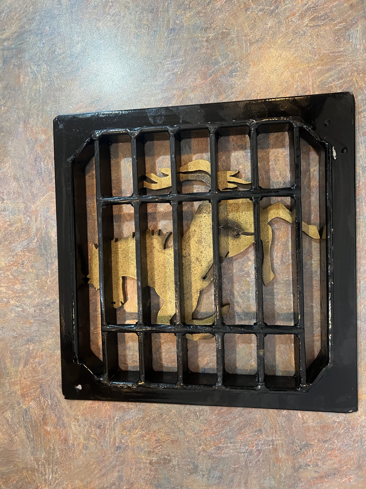 Ferrari Floor Drain cover. Made of Steel with a Brass inlay. Outside measurements are 9-1/2"x9-1/2" Inside 7-3/4"x7-3/4"