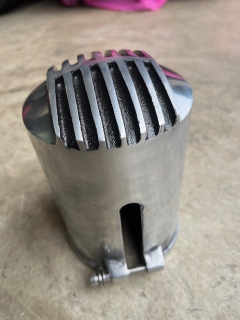 Finned Aluminum Engine Oil Filter Cover Rat Hot Street Rod Jalopy , 3-5/8" ID, 4" OD, & 6" deep, Previously enjoyed and will fit SBC 1955-1985 and possibly others ..check measurements. It has a 1" hairline crack noted in the pictures and marked with a blue tape pointer. This could be welded or left alone and is barely visible and should not hurt functionality. It is sold as is. Local pick up or buyer pays shipping.