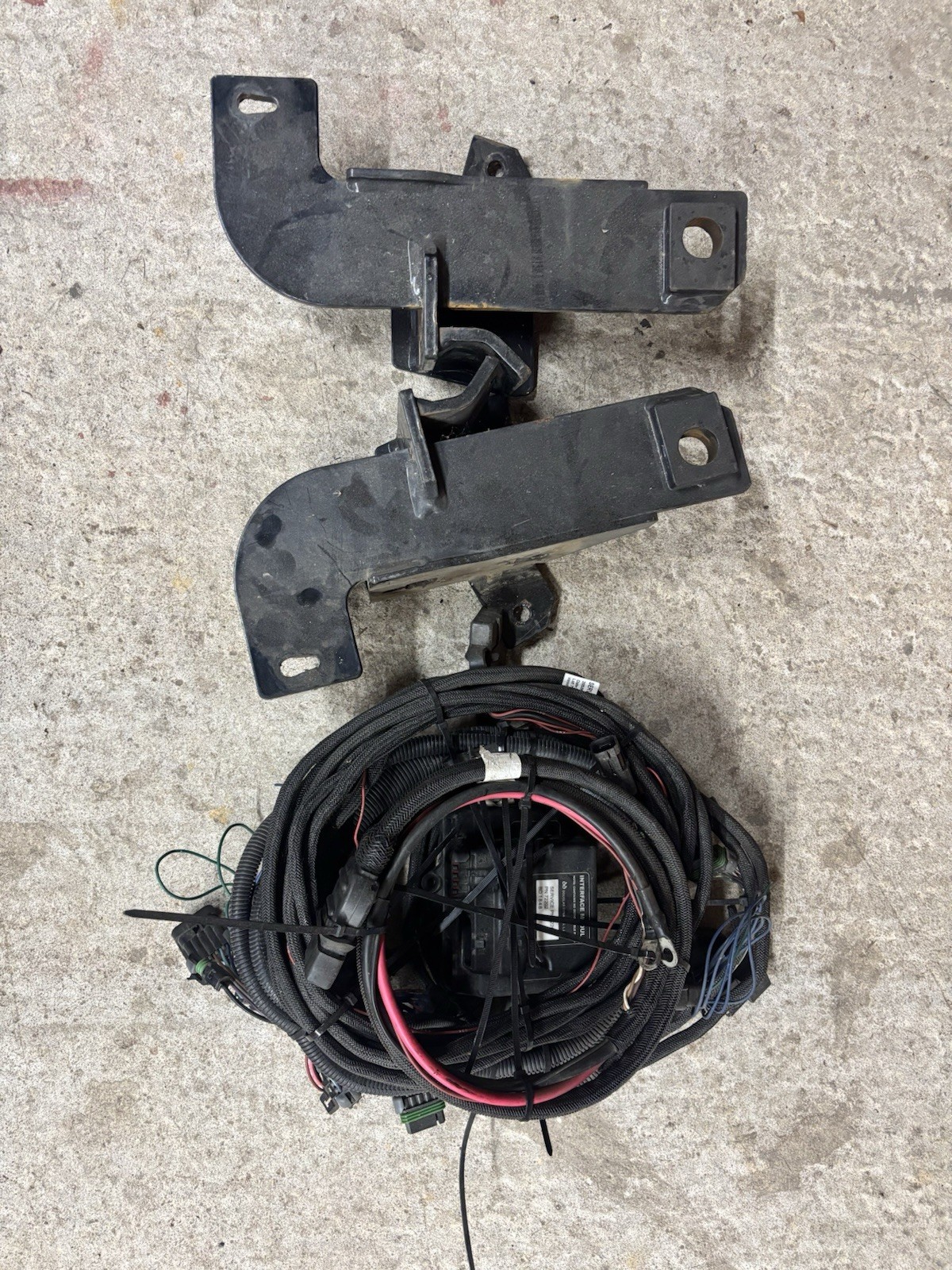 Fisher push plates and complete fleet flex 2 plug wiring harness removed from a 2018 Nissan Titan.