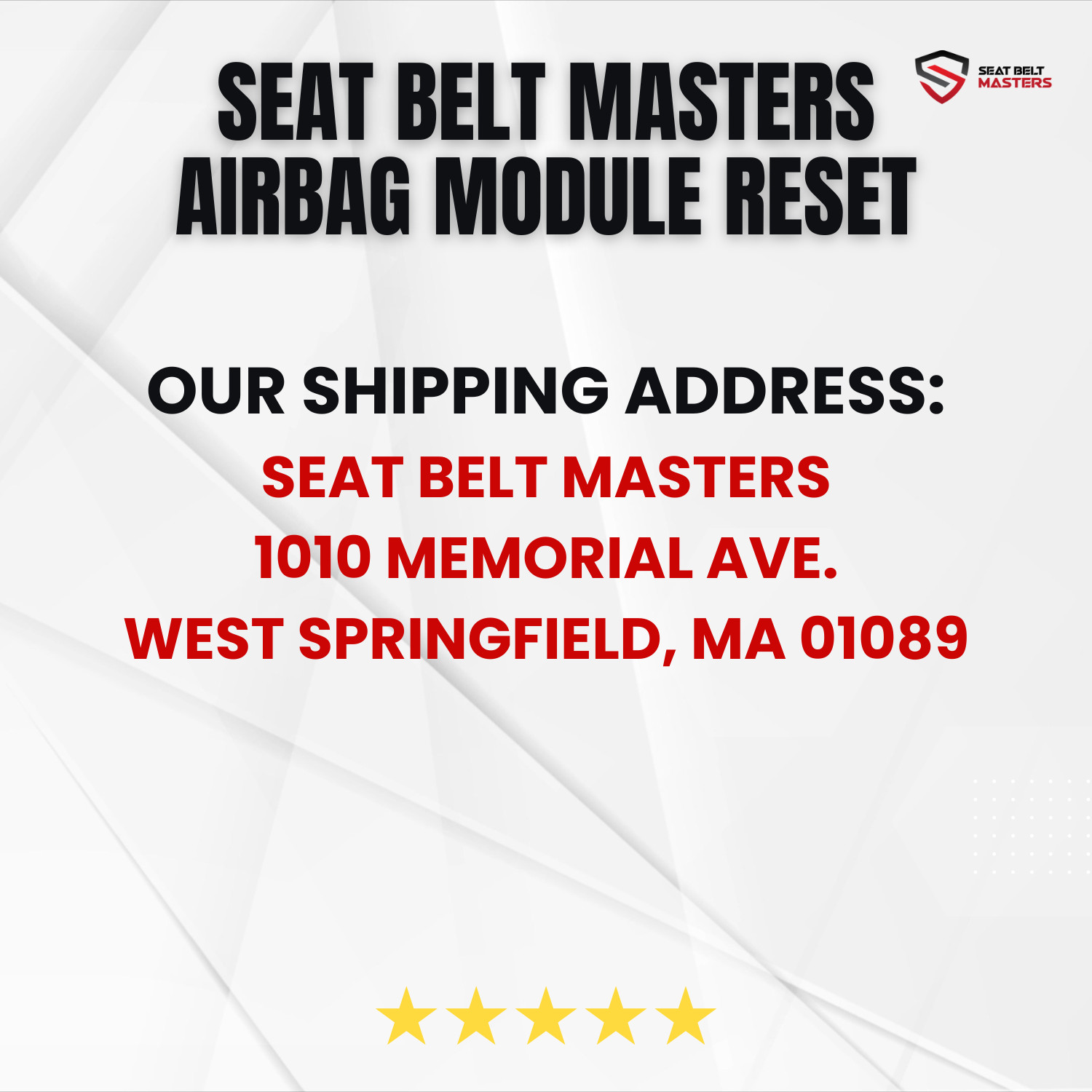 Airbag Module Reset Service for all Chevrolet Models What do we offer? We offer an airbag control module reset service for your airbag control module that came off of a vehicle involved in an accident. Our service will reset your SRS module back to safe operational condition, free of crash data, so you can continue using it in your vehicle. After placing the order, you can package up your module and mail it to us here at: Seat Belt Masters 1010 Memorial Ave. West Springfield, MA 01089 You would pay to ship your module to us, we'd cover the return shipping back to you. Some advanced airbag control modules store crash data in the MCU Processor. These units require additional programming and labor to be successfully reset. In this event, there will be a $20 charge added to the original reset cost. If you would like to know ahead of time if your unit is subject to the Tier 2 Upgrade Fee, please message us a picture and/or part number of the SRS Unit and we will promptly let you know. If you have any questions, please feel free to contact us, we'll be glad to help!