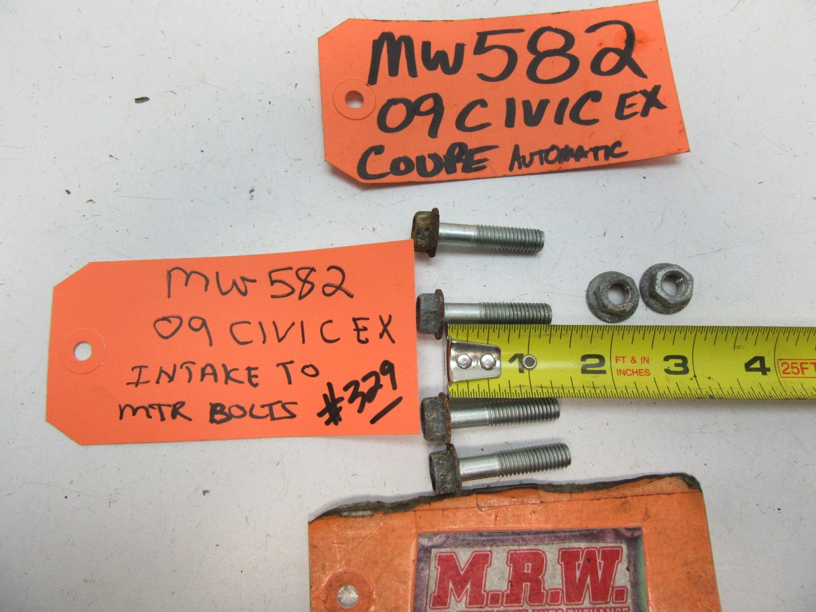**YOU ARE LOOKING AT ONE USED** **SET OF 4 BOLTS & 2 NUTS ONLY, AS SHOWN IN THE PHOTOS.** **THEY BOLT THE INTAKE MANIFOLD TO THE CYLINDER HEAD.** **PLEASE COMPARE YOURS TO OURS IN THE PHOTOS TO BE SURE THIS IS THE ONE YOU NEED FOR YOUR VEHICLE, BEFORE YOU BUY IT.** **IT IS OFF AN 2009 HONDA CIVIC EX 2 DOOR COUPE, EXTERIOR PAINT COLOR CODE: NH-731P, CRYSTAL BLACK PEARL, INTERIOR COLOR: TYPE B, WITH A 1.8L ENGINE, VIN 1 AS 6TH DIGIT, AND 4 SPEED AUTOMATIC TRANSMISSION. MFG DATE: 12/08** **IT FITS:** **CIVIC 06-11 1.8L** **IT IS USED BUT IN GOOD CONDITION.** **IF YOU HAVE ANY QUESTIONS PLEASE ASK PRIOR TO BUYING. ALL SALES ARE FINAL. WE SELL EVERYTHING AS-IS, WITH NO RETURNS. PLEASE LOOK FOR MORE GREAT ITEMS IN OUR STORE. THANKS MRW488. The free listing tool. List your items fast and easy and manage your active items.