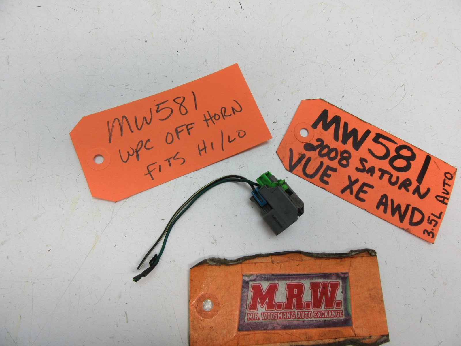 **YOU ARE LOOKING AT ONE USED** **WIRE & PLUG ONLY, AS SHOWN IN THE PHOTOS.** **IT IS OFF THE HIGH OR LOW NOTE HORN.** **IT IS OFF AN 2008 SATURN VUE XE, ALL WHEEL DRIVE (AWD), WITH A 3****.5L,VIN N, 8th digit, opt LZ4 AND 6 SPEED AUTOMATIC TRANSMISSION,****EXTERIOR PAINT COLOR BLACK, MFG DATE: 08/07** **IT FITS:** **CAPTIVA SPORT 12-15** **VUE 08-10** **IT IS USED BUT IN GOOD CONDITION.** **IF YOU HAVE ANY QUESTIONS PLEASE ASK PRIOR TO BUYING. ALL SALES ARE FINAL. WE SELL EVERYTHING AS-IS, WITH NO RETURNS. PLEASE LOOK FOR MORE GREAT ITEMS IN OUR STORE. THANKS MRW488. The free listing tool. List your items fast and easy and manage your active items.