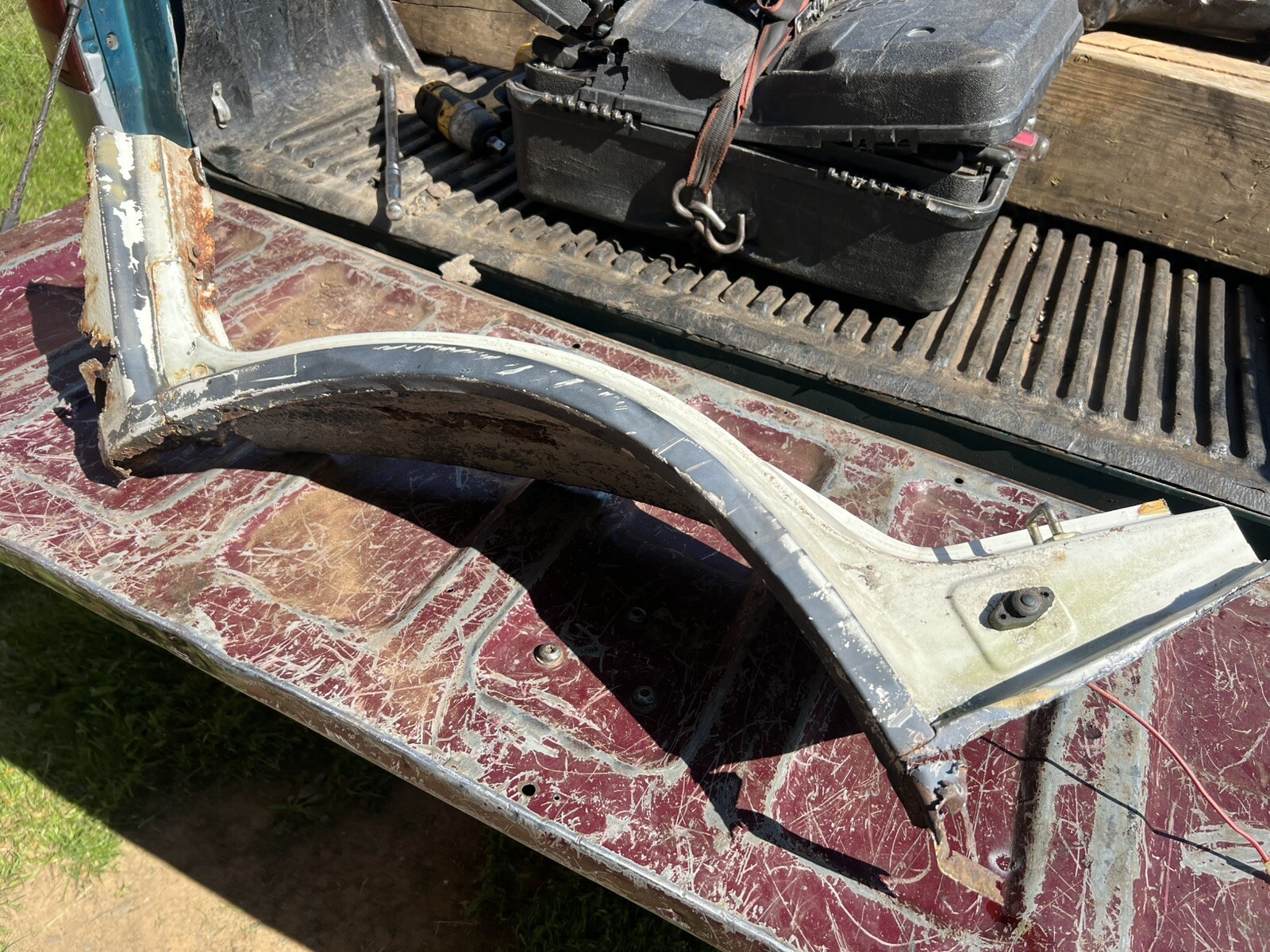 Fj60 fj62 drivers side rear wheel well patching metal. Would be great to fix a damaged rear wheel well section on your cruiser. Sold as is.