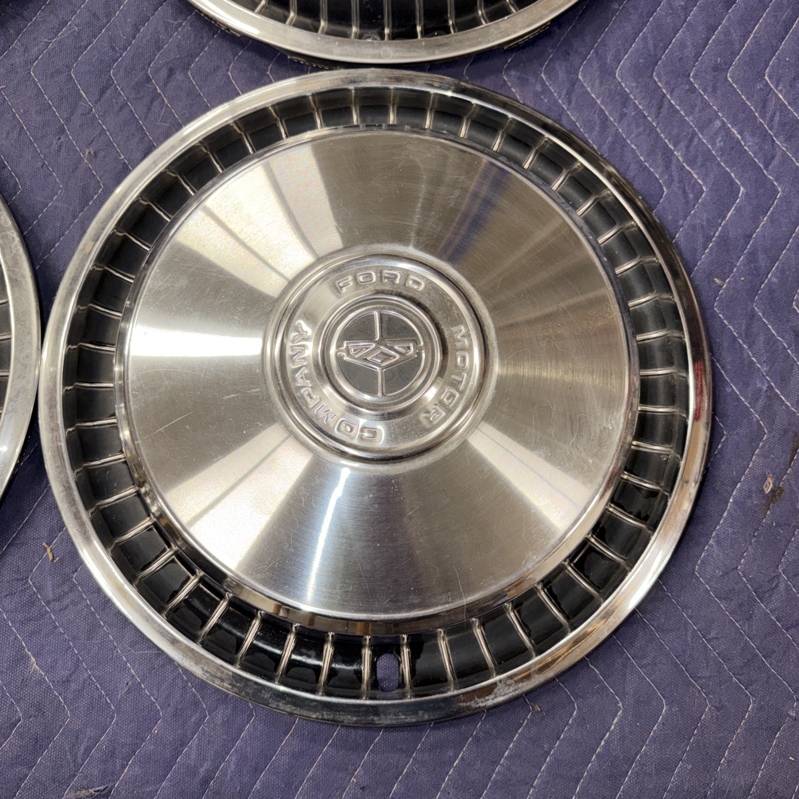 Please look at pictures carefully as they are part of the description. Four vintage Ford Hubcaps in overall good condition for the age. These hubcaps have typical dents, scratches, and dings associated with Hubcaps of this age. I would consider these poverty or driver quality Hubcaps. Still a decent set of Hubcaps that would make a great addition to any vehicle. I simply wiped these down with a damp rag, I believe that they would clean up pretty good with a little more scrubbing and polishing. Thanks for looking! #fordtrk44