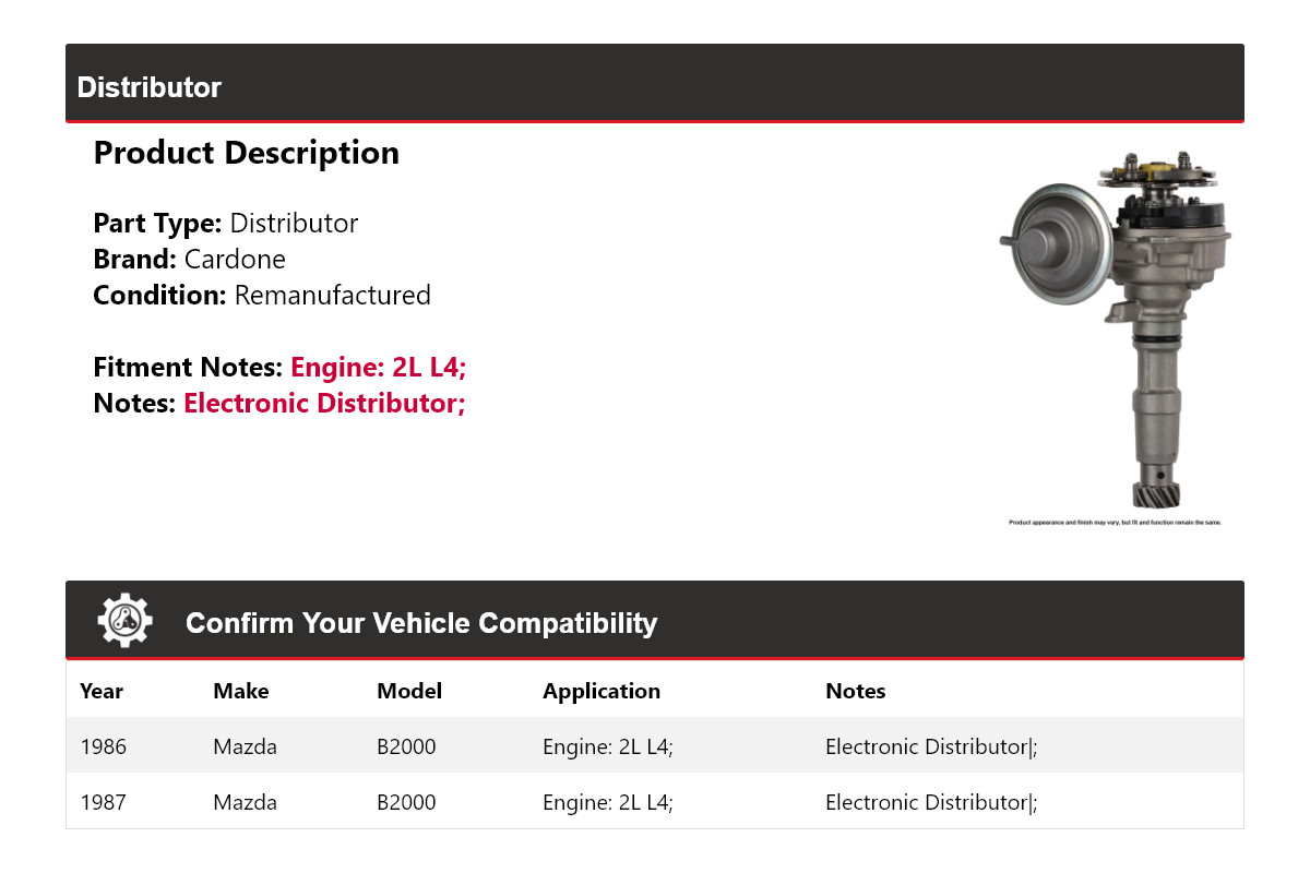 - Application: Mazda B2000 Distributor