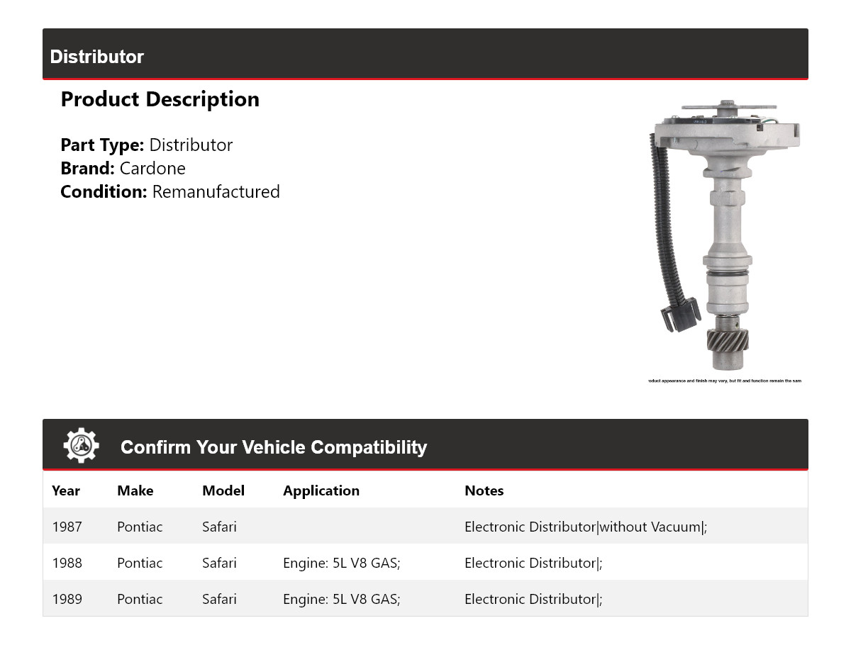 - Application: Pontiac Safari Distributor