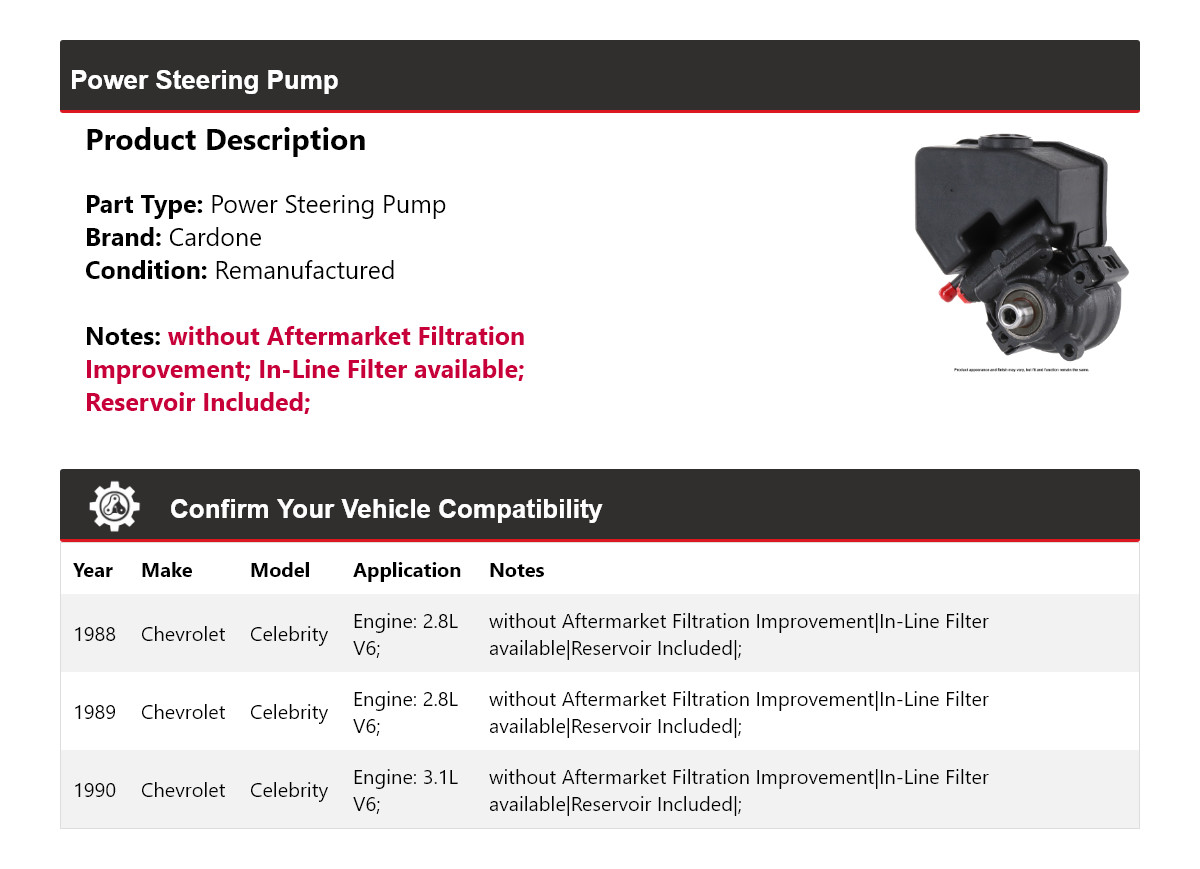 - Application: Chevrolet Celebrity Power Steering Pump