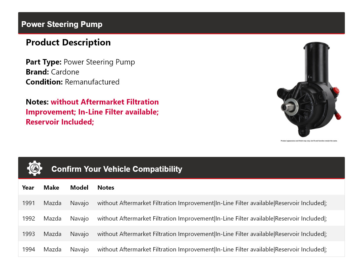 - Description: Remanufactured Power Steering Pump