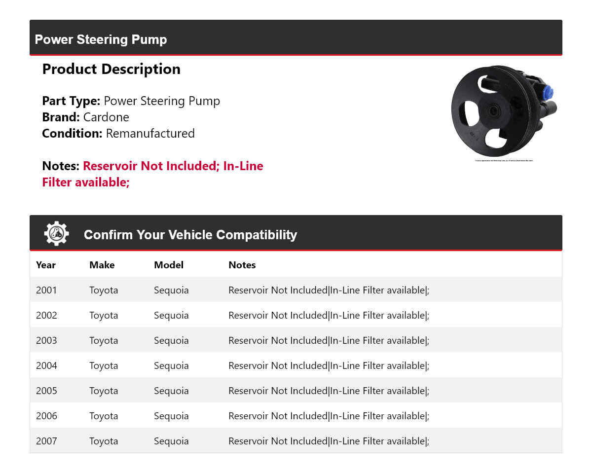 - Application: Toyota Sequoia Power Steering Pump