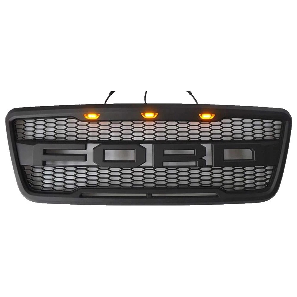 Product Description Fitment: For 2004-2008 F-150 F150 Features: Direct bolt-on, Raptor style Grill fitment Made from high grade ABS materials to withstand rough road wear and the test of time. Light weight design.Gives your vehicle a new style and appearance. Accentuates your vehicles overall look. EASY INSTALLATION - Direct bolt-on replacement. Easy to install and replace the original front grill, No drilling required. Installation Instruction is NOT Included Package Include: 1\*Front Upper Grille 3\*Amber LED Lights 1\*Wire Harness - About Returns - Better Experience: - Please contact us regarding any problem of the product before leaving the negative feedback, we will try our best to solve the problem. - Please double check the OE number or fitment before place the order, the buyer is responsible for the return cost if order wrong item or does not like it etc. - We provide free return in some products, please make sure to use the original package for return, and make sure wrap well to avoid any surcharge due to box oversized or item damaged when it is returned. **Thank you for your purchase and support!** - We are committed to our customer's satisfaction. - Shipping from USA (usually 2-6 days), Fast Shipping and Good Service. About Returns - Please contact us regarding any problem of the product before leaving the negative feedback, we will try our best to solve the problem. - Please double check the OE number or fitment before place the order, the buyer is responsible for the return cost if order wrong item or does not like it etc. - We provide free return in some products, please make sure to use the original package for return, and make sure wrap well to avoid any surcharge due to box oversized or item damaged when it is returned. **Thank you for your purchase and support!** Better Experience: - We are committed to our customer's satisfaction. - Shipping from USA (usually 2-6 days), Fast Shipping and Good Service. powered by