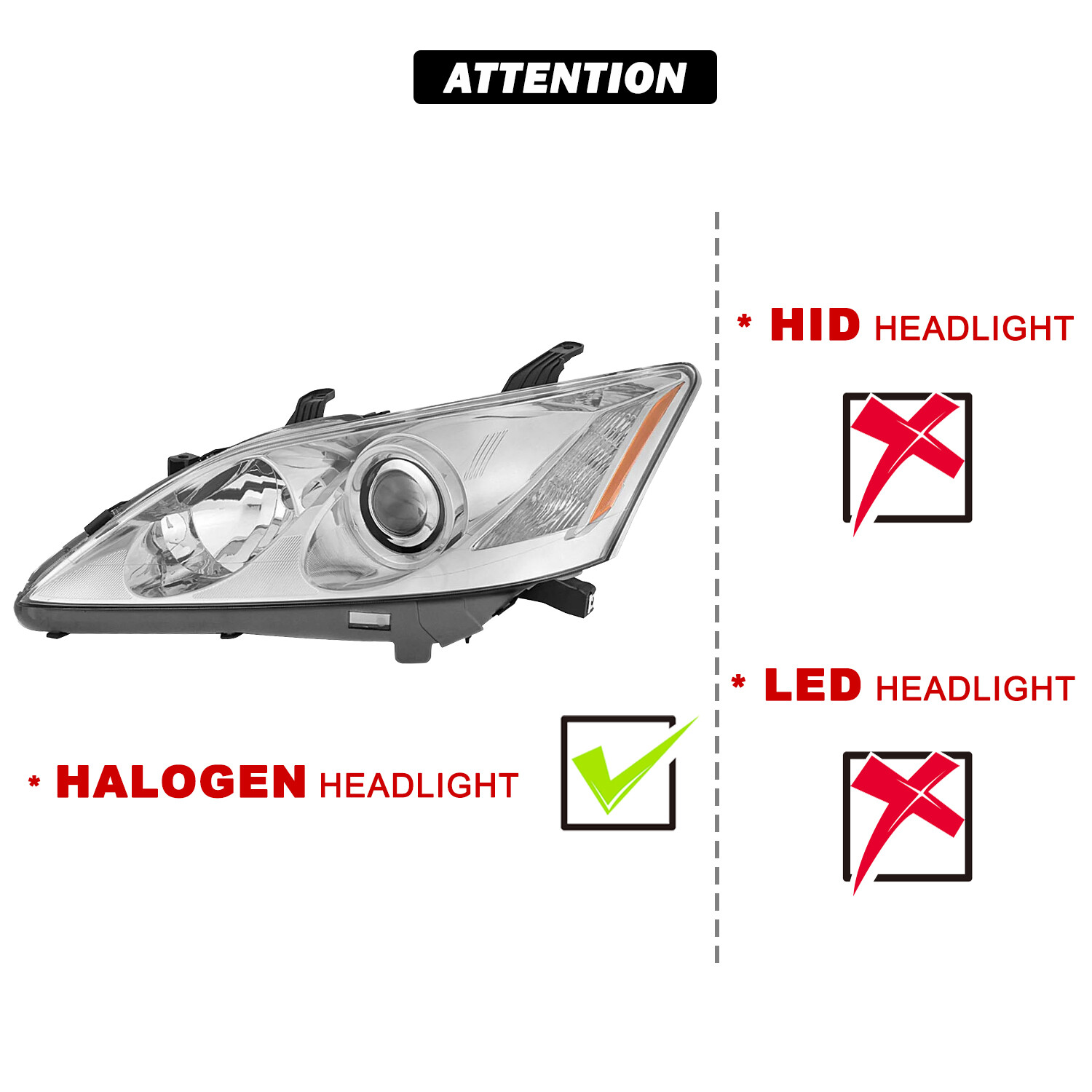 For 2007 2008 2009 Lexus ES350 Headlight Left Driver Side Halogen W/O HID