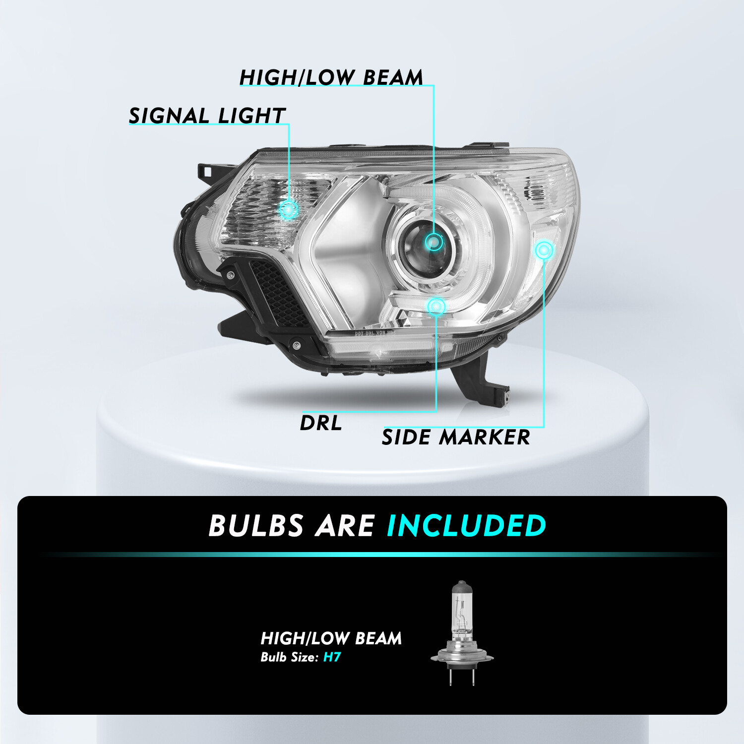 - Bulbs Included: High/Low Beam Included