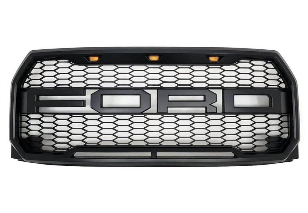 Product Description **Features:** - High strength, good toughness, corrosion resistant and not easily bent or cracked. Perfectly finished and will not corrode, rust or delaminate. - Made of high quality ABS, lightweight design, reduce the weight of the car to reduce fuel consumption. - Easy to install, can directly replace the original grille without any cutting or drilling, all the accessories are included in the package and there is no drilling required. - The skeletonized design will provide more airflow to enhance the car's interior ventilation and enhance the engine's cooling ability. - Came with mesh grille, bolts, screws, wiring harness and all the letters you need, which will give your truck a stylish overall look. **Fitment:** For 2015 2016 2017 Ford F-150 including XL, XLT, LARIAT, 1, King Ranch, Platinum and Limited, which is the perfect replacement for decorating your car. PLEASE NOTE: NOT FIT FOR THE TRUCK WITH FRONT CAMERA! **Package Includes:** 1 x matte black front bumper grill 3 x Amber LED Lights 1 x Letter F,1 x Letter R,Wiring harness,Sealing Rubber Strip,Metal Buckl NOTE:The black bar can be taken off by a screw driver, then you will see the other letters. - About Returns - Better Experience: - Please contact us regarding any problem of the product before leaving the negative feedback, we will try our best to solve the problem. - Please double check the OE number or fitment before place the order, the buyer is responsible for the return cost if order wrong item or does not like it etc. - We provide free return in some products, please make sure to use the original package for return, and make sure wrap well to avoid any surcharge due to box oversized or item damaged when it is returned. **Thank you for your purchase and support!** - We are committed to our customer's satisfaction. - Shipping from USA (usually 2-6 days), Fast Shipping and Good Service. About Returns - Please contact us regarding any problem of the product before leaving the negative feedback, we will try our best to solve the problem. - Please double check the OE number or fitment before place the order, the buyer is responsible for the return cost if order wrong item or does not like it etc. - We provide free return in some products, please make sure to use the original package for return, and make sure wrap well to avoid any surcharge due to box oversized or item damaged when it is returned. **Thank you for your purchase and support!** Better Experience: - We are committed to our customer's satisfaction. - Shipping from USA (usually 2-6 days), Fast Shipping and Good Service. powered by