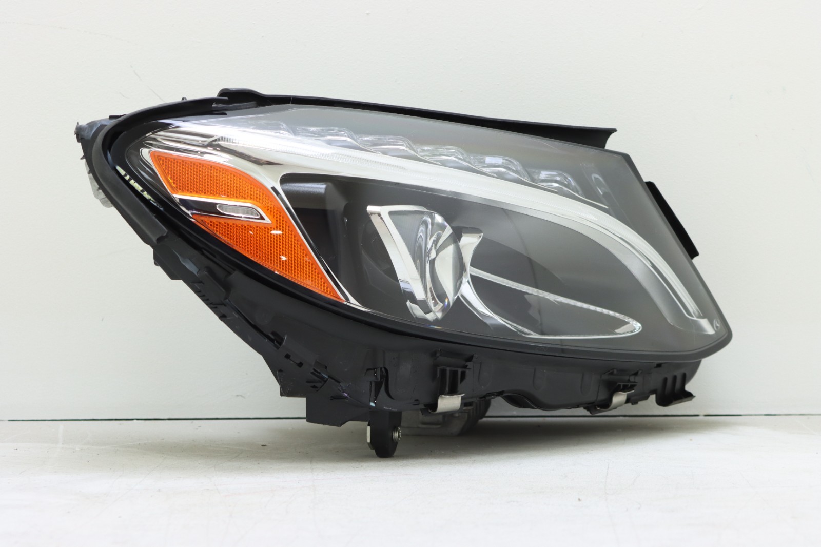 The product is a right passenger LED headlight for 2015-2018 Mercedes Benz C-Class vehicles. It includes 2 bulbs and a ballast, with the manufacturer part number A2059064203. The headlight features a chrome housing with clear lens color, and is DOT-certified as factory headlights. The lighting technology is LED, operating at a voltage of 12V, and is designed specifically for Mercedes-Benz vehicles from the years 2015 to 2018. This headlight assembly is a genuine OE/OEM part, ensuring a perfect fit and quality performance for your vehicle..Item may have some scratches on the lens surface..Please check with your local dealer to ensure fitment on your make and model.