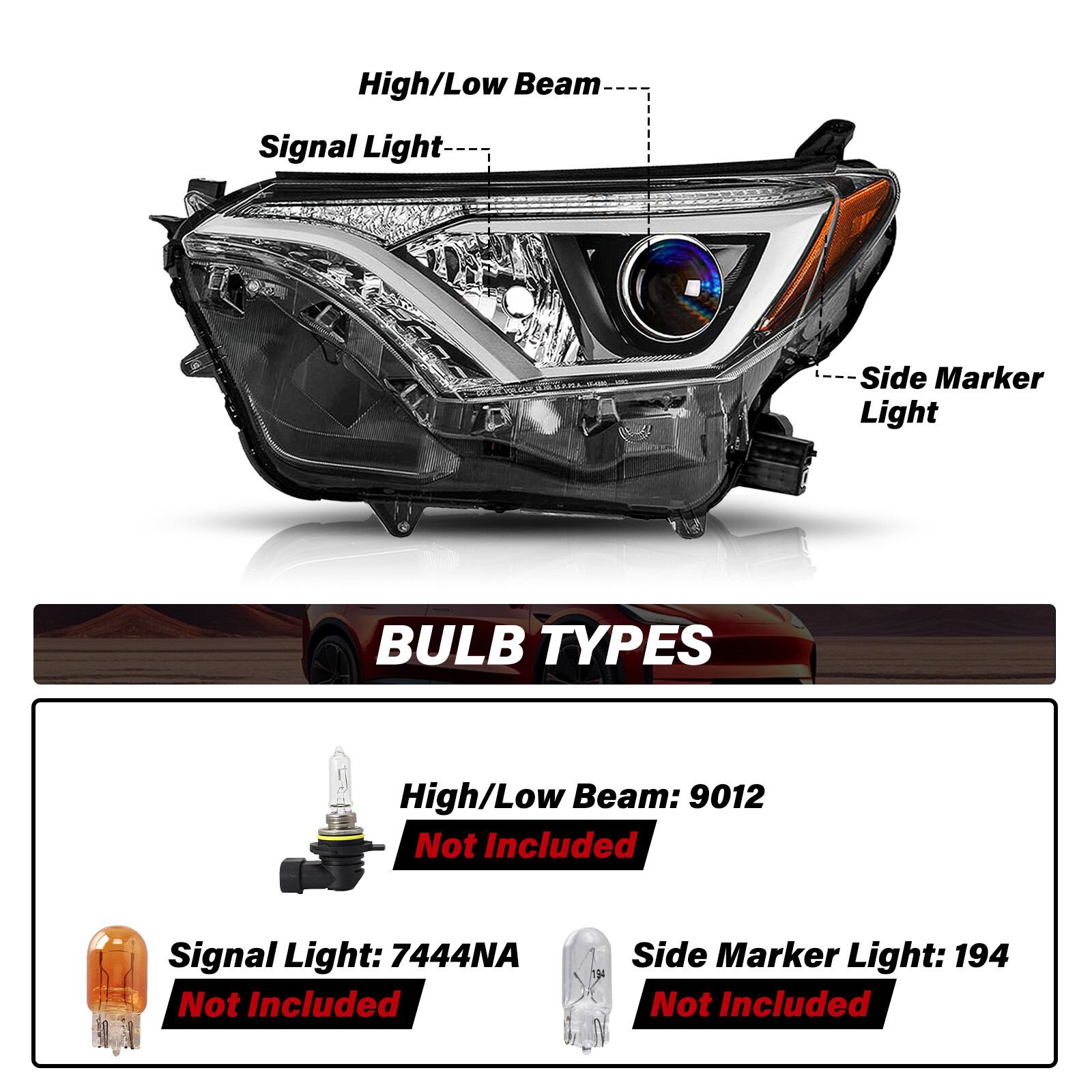 Product Description **The item is a customer return open product. Please be aware that the package or product may have some minor to moderate cosmetic sign of use or damaged. Nonessential parts or accessories may be missing.** **Vehicles Types Compatibility:** **- For 2016-2018 Toyota RAV4 Models** **Package included:** **1 Pair Headlights. Bulbs are not included.** - Payment Policy - Shipping Policy - Returns Policy Payment Policy - We accept PayPal, Google Pay, Credit Cards, and Debit Cards. Shipping Policy We offer free shipping for the 48 contiguous states. We don't ship to PR, HI, AK ,GU, VI, PO addresses.