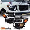For 2016-2019 Nissan Titan LED Light Tube Headlights - Black Housing Assemblies