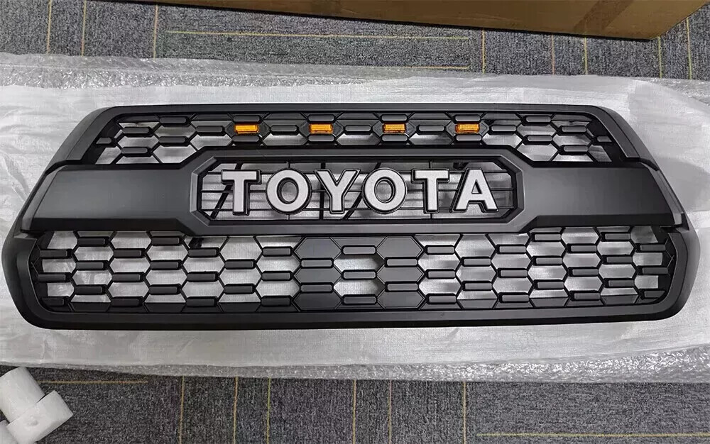 Product Description **Features:** Materials: Made of high quality ABS Plastic. High strength, good toughness, corrosion resistant and not easily bent or cracked. Lightweight Design:Reduce the weight of the car to reduce fuel consumption. Installation: Easy to install. Plug and play, can directly replace the grille without any cutting or drilling. Effect: Unique design improves stylish and sport appearance. Contains excellent impact resistance as well as durability, withstand heat and protect your truck from road debris. **Fitment:** For 2016 - 2023 Tacoma **Package include:** 1 x Front bumper grille 1 set Amber LED Lights 1 x Garnish Sensor - About Returns - Better Experience: - Please contact us regarding any problem of the product before leaving the negative feedback, we will try our best to solve the problem. - Please double check the OE number or fitment before place the order, the buyer is responsible for the return cost if order wrong item or does not like it etc. - We provide free return in some products, please make sure to use the original package for return, and make sure wrap well to avoid any surcharge due to box oversized or item damaged when it is returned. **Thank you for your purchase and support!** - We are committed to our customer's satisfaction. - Shipping from USA (usually 2-6 days), Fast Shipping and Good Service. About Returns - Please contact us regarding any problem of the product before leaving the negative feedback, we will try our best to solve the problem. - Please double check the OE number or fitment before place the order, the buyer is responsible for the return cost if order wrong item or does not like it etc. - We provide free return in some products, please make sure to use the original package for return, and make sure wrap well to avoid any surcharge due to box oversized or item damaged when it is returned. **Thank you for your purchase and support!** Better Experience: - We are committed to our customer's satisfaction. - Shipping from USA (usually 2-6 days), Fast Shipping and Good Service. powered by