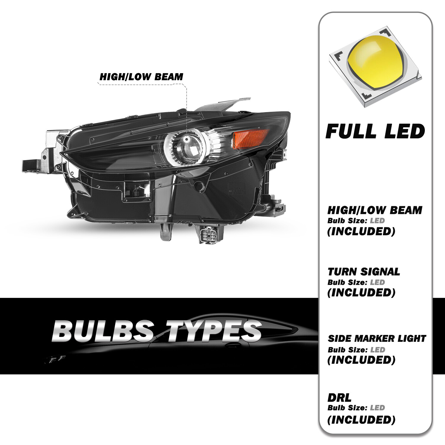 Please be aware that the package or product may have some minor to moderate cosmetic sign of use or damaged. Nonessential parts or accessories may be missing.** **# Vehicles Fitment:** **For 2020-2023 MAZDA CX-30** **# Package includes:** **- 1 left driver side headlight (Bulbs areincluded)** - Payment Policy - Shipping Policy - Returns Policy Payment Policy - We accept PayPal, Google Pay, Credit Cards, and Debit Cards. Shipping Policy We offer free shipping for the 48 contiguous states. We don't ship to PR, HI, AK ,GU, VI, PO addresses.