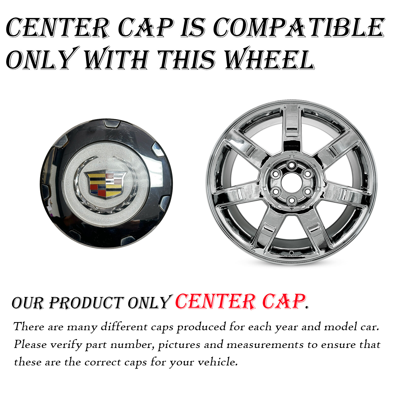 Please VERIFY THE PART NUMBER on your current center cap or hubcap before purchasing. Some center caps/hubcaps look the same but are different sizes. Our primary purpose is for both parties (buyer and seller) to save money and time on returns. Your satisfaction is essential to us. Some center caps/hubcaps look the same but are different sizes. Our primary purpose is for both parties (buyer and seller) to save money and time on returns. Your satisfaction is essential to us. **Item Specifics**Brand :CadillacManufacturer Part Number :9598295, 9597355, 9598677Placement on Vehicle :Front,Rear,Left,RightOE/OEM Part Number :19431594 Description Used, will have light scratches but in good working condition.Picture of rim for reference of likely wheel the center cap fits on.Please make sure these are the parts that will fit your wheels, **match the part numbers on this listing to the back of your cap**. We try to provide you with as much information as possible, please ask us if you have any questions or concerns! If you do not know the information of your wheel/cap or can not locate it feel free to send us a picture Along with detailed information on what exactly you are interested/looking for. OEM Wheel Specialists Serving USA Since 1958. 147,000+ Wheels Sold. 30 – Day Money Back Returns. No fuss, No Hassles, No Restocking Fee, We Will Make It Right. 99.7% of shipments are shipped same day All the trademarks, company names or logos referenced are used for identification purposes only and are the property of their respective owners. Shipping We provide shipping to the lower 48 Contiguous states, we do not ship to APO's. If you need a wheel shipped to Alaska, Hawaii, or Puerto Rico, please contact us. All shipments to these regions are FINAL SALE and cannot be returned. If we have agreed to ship outside of these restrictions, the customer is responsible for all taxes, fees, etc. We welcome local pick up at our Anaheim shop (M-F 8am-5pm PST), please message us for details. We ship every business day via USPS, UPS or Fedex (At sellers discretion), orders are shipped within 1 business day of purchase. Please provide a valid contact number for shipping purposes. We pack your new wheel using the best safety standards for travel, if you suspect the shipping carrier is responsible for damages, please contact us ASAP so we may resolve the problem. Please allow 3-7 days for delivery, depending on your location, most areas in the U.S. are within 5 days. Due to high volumes, signature is not required on our shipments. It is very important to make sure you have a responsible party at your residence to receive the package on the expected ETA. Santa Ana Wheel is not responsible for reimbursing packages that were lost or stolen due to negligence. We cannot guarentee arrival times, but we try to be as accurate as possible when we provide you with your tracking number. Once your purchase is complete, you will receive 2 important emails: 1. When your order has shipped out, 2. When your shipment has arrived. Please pay close attention to arrival times and your provided contact email for any issues or updates. Expedited shipping is available, the buyer must contact us before the wheel is purchased and shipped. (Estimated $20 more) Shipping fees are not refundable unless it is determined Santa Ana Wheel is responsible for shipping an incorrect or damaged wheel. We allow order cancellations, but we must be contacted prior to the wheel being shipped out. Once the wheel is scanned and en route, a return request must be started on the buyers end. In the event you must return the wheel back to us, please pack it the same way with the same material it was shipped in to prevent damage. Returns We offer a 30-day money back guarantee, as long as the item has not been installed on a vehicle and in the same condition when purchased. If we have shipped a cap that is different then what is stated in the listing and pictures, we will be responsible for all return shipping fees. The easiest process for returns: 1\. 2\. 3\. Ship the wheel and original invoice back to us in the original condition and packaging by dropping off at a local UPS or Fedex Facility. 5\. The correct amount of refund will be processed once we receive the wheel back in the expected condition. 6\. We ask to help resolve any individual issues before you leave a negative review. What is NOT Refundable Any wheels that have been installed on a tire and/or vehicle. So please be sure the wheel is the correct one you ordered before installing. Wheels that have been altered from the original state when purchased. Painted, chromed, etc. FAQ How do i make sure this is the correct center cap for my vehicle? Before you purchase your center cap please carefully read the description and fitments of this cap to assure it does in fact fit your EXACT vehicle ( Year, Make, Model and size of wheel). Also if you have your original cap on your vehicle or in your possession, flip the cap over and match the part numbers we have on our listing. What if my cap looks the same but the part no. doesn't match? Some caps have multiple numbers for the same cap, depending on the year. Please send pictures of your cap to us so we can be 100% sure before sending. What if I can't tell the finish from the picture? Please send your phone number via message and we will send detailed pictures ASAP What if i need multiple items but the quantity doesn't does show you have them? If you need multiple items and shows we do not have enough quantity listed please give us a call to check availability. Please have information from the listing. We will ask for a Number at the end of the listing title to reference which item you are referring to for example:\[ Single OEM 2000-2004 Chevy Chevrolet Corvette CENTER CAPS 9593475 5105\] The title will have the Year, Make, Model, Manufacturer Part Number and Hollander number (4-5 digit number). We reference our listings by the Hollander Number so in this case the 